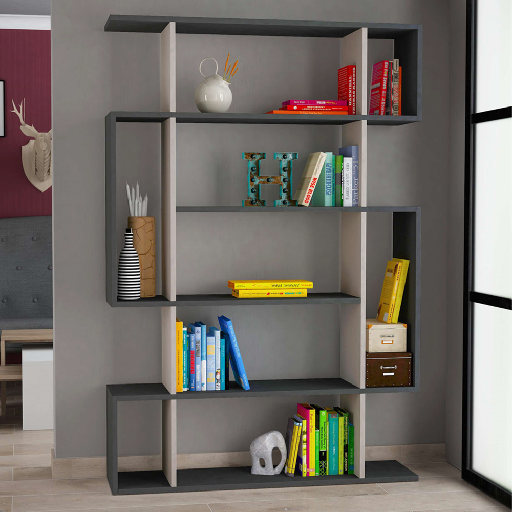 Elevate your living room, office, or bedroom with the Decortie Mito Tall Mocha Grey Bookcase. Standing at 161cm tall, this stylish bookcase features a contemporary oak and anthracite grey finish, perfect for modern and minimalist interiors. With five spacious tiers and four open compartments, it offers versatile storage for books, plants, and decorative items. It is designed to fit perfectly into any space, the Mito Bookcase combines functionality and style, making it an ideal addition to your home or office. Made with high-quality engineered wood and finished with melamine for added durability, this bookcase is both easy to maintain and built to last. Enhance your space with this elegant and practical storage solution today.