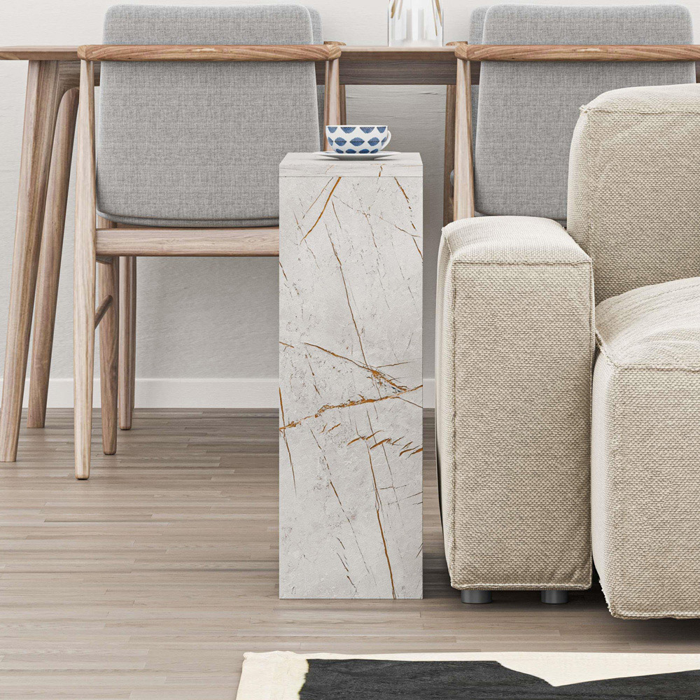 Renovate your living space with the Decortie Simpi Single Shelf Gold Marble Effect Modern Side Table. This sophisticated side table is a stylish and practical addition to any space. It is perfect for small apartments, where every inch counts, or for adding extra surface space to larger rooms. With its open compartment, it doubles as a magazine rack, keeping your favourite reads organised and your space tidy. This versatile table is perfect for use as a coffee table, side table, or even as a small TV stand. Its clean lines and minimal design add a touch of elegance to any room, effortlessly complementing modern or classic decor.