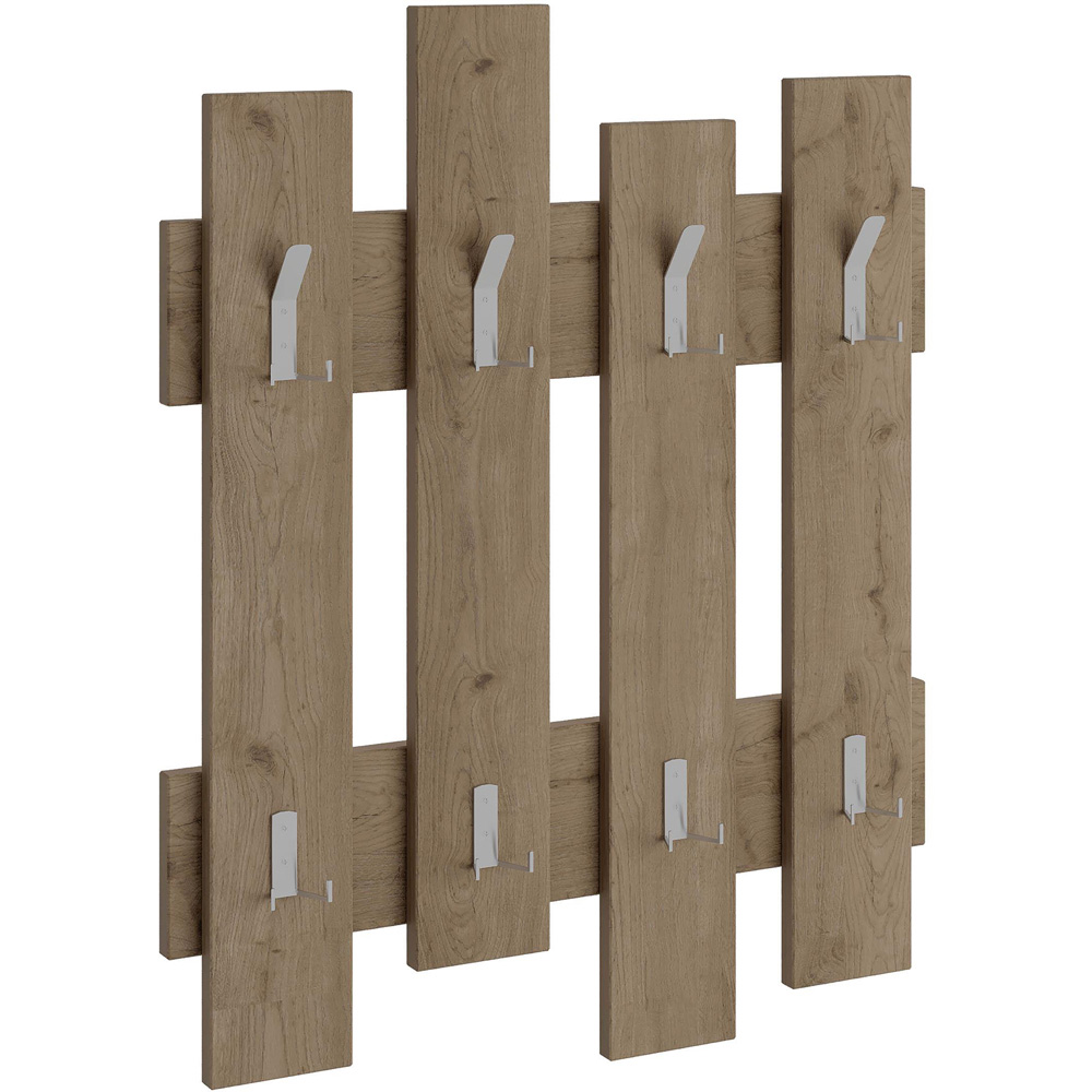 Decortie Wave Oak Effect Wall Mounted Hanger with 8 Hook