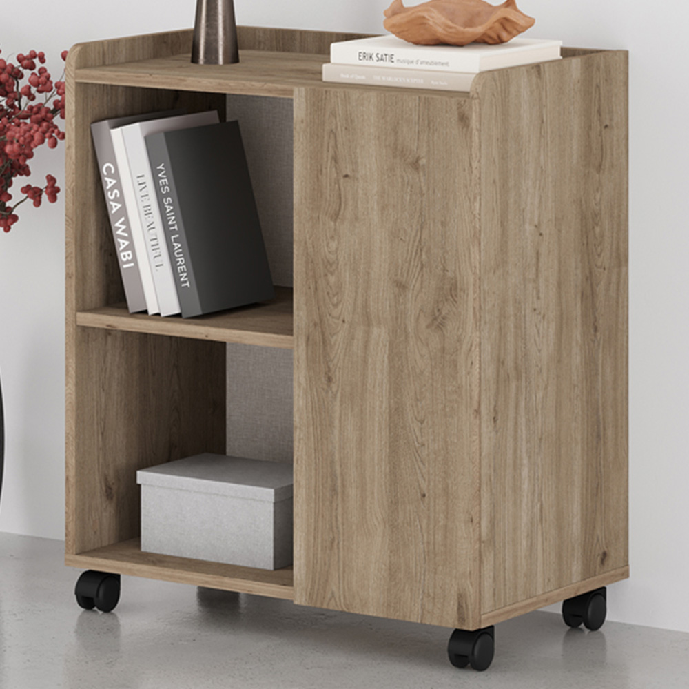 This compact and versatile mobile storage cabinet makes organisation easy in any room. With a combination of closed and open shelving, it’s ideal for storing documents, books, or household items. The soft-close door adds a touch of quality, while the four black caster wheels with brakes offer easy movement and stability. Its natural look complements a wide range of interiors, and the flat-pack design makes assembly simple. Use it in the office, hallway, or bedroom to create extra storage without taking up too much space.
