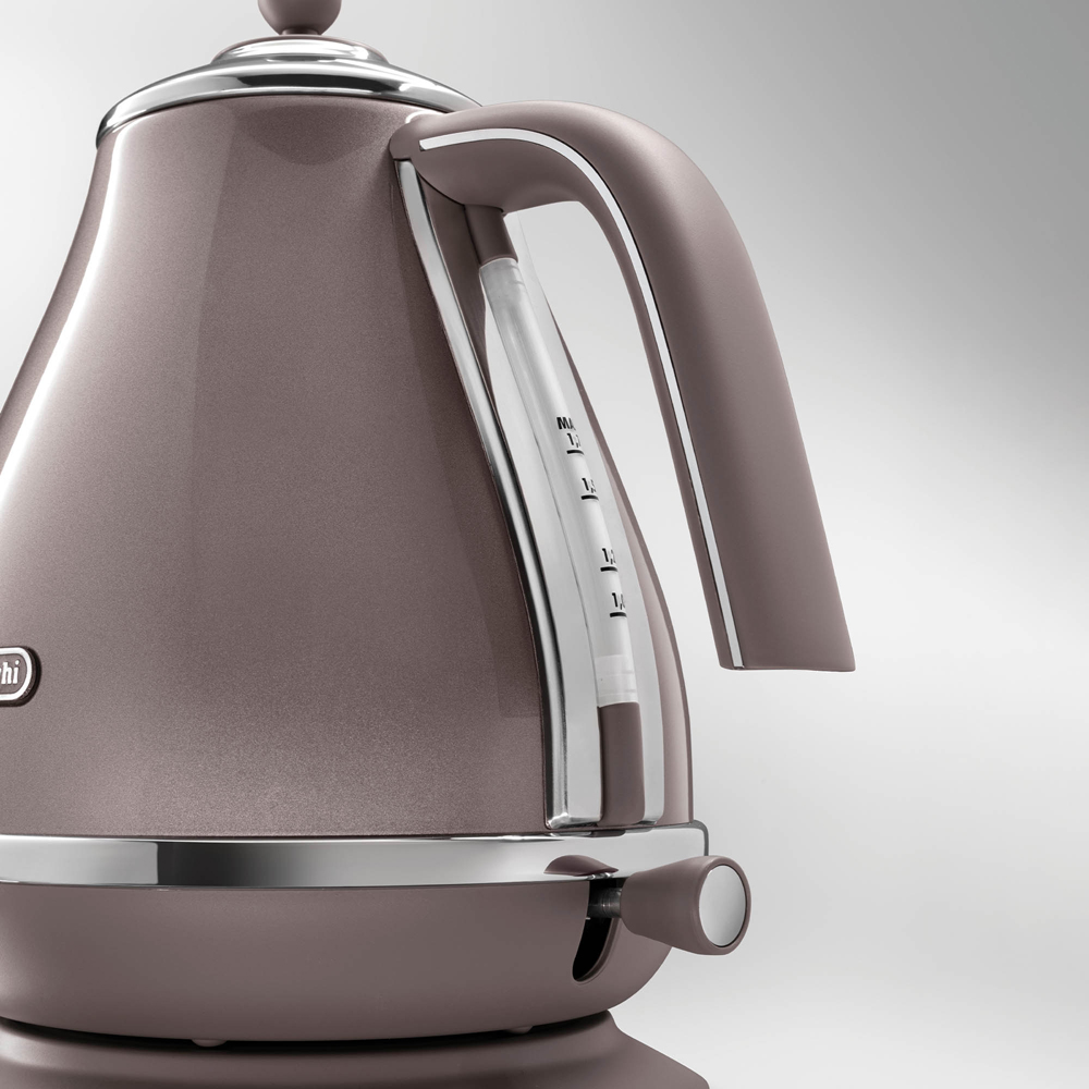 Bring style and efficiency to your kitchen with the De'Longhi Icona Metallics electric kettle, designed to deliver both sophistication and practicality. With a generous 1.7L capacity, it’s perfect for larger households, making morning breakfasts and afternoon tea effortless. The built-in anti-scale filter reduces impurities, keeping your kettle scale-free while ensuring cleaner water. Fully removable and washable, it simplifies maintenance for long-lasting performance. Designed for convenience, the 360-degree swivel base allows flexible placement, while the detachable base offers cord-free pouring. Featuring a unique glossy finish with chromed accents, it brings a touch of elegance to any kitchen. The smart safety features include three-level safety protection - auto shut-off when water reaches boiling point; thermal cut-off for extra security, and auto shut-off when lifted from the base. The cord storage keeps your countertop neat and clutter-free. Sleek, safe, and efficient, the electric kettle is the perfect fusion of style and function.