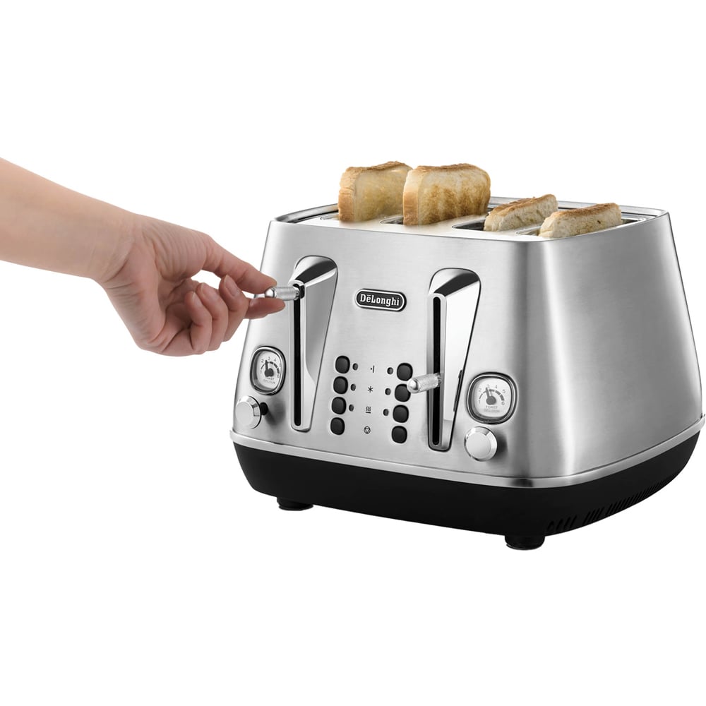Upgrade your kitchen with the De'Longhi DL4312 Distinta X Toaster in Silver, designed for both style and efficiency. Featuring a large 4-slot capacity with independent controls, it lets you toast only what you need, reducing energy waste and giving you complete flexibility. With six-position progressive electronic browning control, you can achieve your perfect level of crispness every time, while the integrated electronic controls make reheating and defrosting effortless. Finished in modern brushed stainless steel, the Distinta X design is more than just an appliance—it’s a bold statement of style, adding a refined touch to any kitchen.