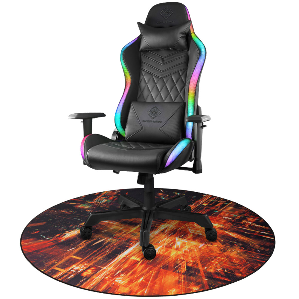Elevate your gaming setup with the Deltaco Floorpad 110cm. This floor pad features a polyester surface with an anti-slip backing and stitched edges. It safeguards your floor from scratches and prevents damage to your carpet caused by the pressure from your chair. The anti-slip surface provides a stable base, keeping your chair in place during intense gaming sessions. It also has a five-year warranty. Size: 110cm.