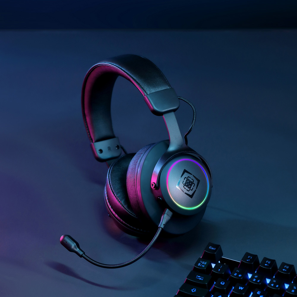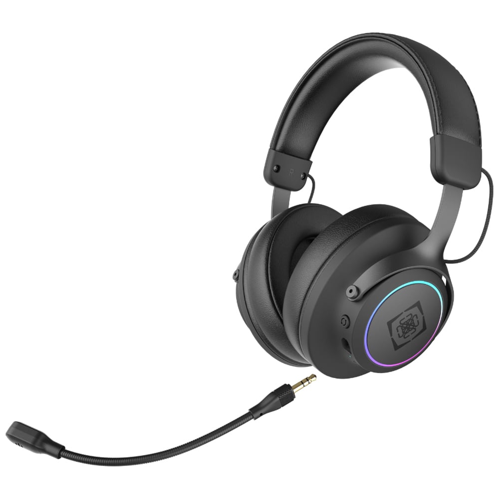 Experience gaming excellence with the Deltaco RGB Wireless Gaming Headset featuring 7.1 Surround Sound. This headset is equipped with 7.1 surround sound, powerful 50mm drivers, and dynamic RGB lights for an impressive setup. Designed for gaming enthusiasts, it boasts ultra-comfortable faux leather ear cushions with memory foam and premium metal plate ear caps. It seamlessly connects to PC and PS4/5 via 2.4 GHz USB, ensuring a lag-free experience, with an optional 3.5mm connection. Complete with an omnidirectional and detachable microphone, conquer your gaming realms with unmatched style and precision. The 7.1 surround sound allows you to feel the precision of audio placement, immersing yourself in a three-dimensional soundscape. Whether it's footsteps behind you or distant gunfire, the technology delivers unparalleled spatial awareness, elevating your gameplay with immersive precision and clarity. It offers an impressive +20 hours of playtime with convenient USB-C recharging and is supported by a reassuring five-year warranty.