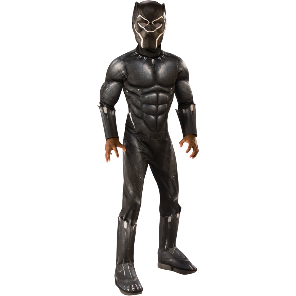 Get ready to awaken the power of Wakanda in your child with the Rubies Masquerade Kids Deluxe Black Panther Costume Medium. This costume includes a shiny jumpsuit with attached boot tops that closely resemble the suit from the movies. The jumpsuit features a quilted padded muscle chest, creating a strong look for your child. Additionally, the set comes with a mask that replicates Black Panther’s iconic look and covers the face. This costume is ideal for themed parties such as Halloween. Your child will embody the noble and agile hero, exuding stealth and strength as they safeguard their kingdom. The costume has undergone comprehensive safety testing where applicable, meeting all relevant regulations.