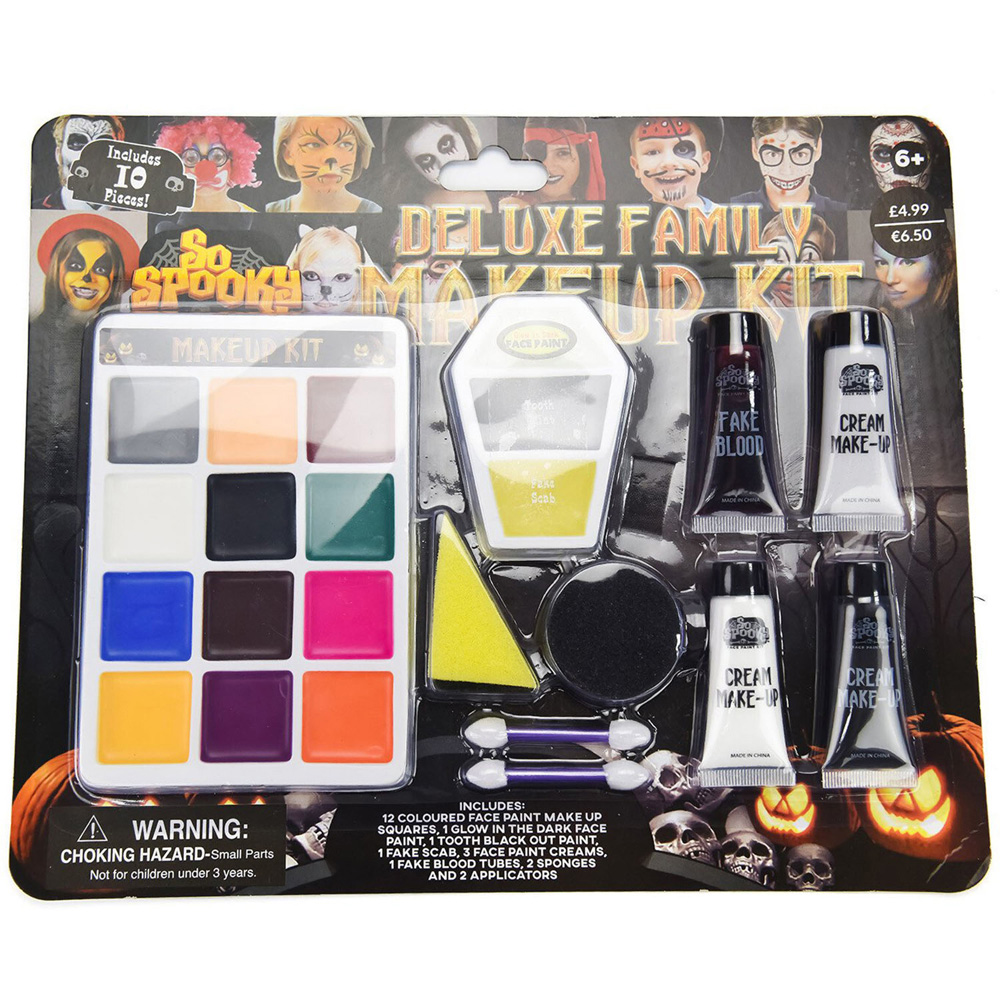Get your family Halloween ready with this Deluxe Family Make Up Kit. Perfect for Halloween parties and other spooky occasions, this makeup kit provides everything you need for eerie and imaginative face painting. It includes various face paints, sponges, and applicators to make scary looks. Perfect for creating everything from zombies to vampires, this make-up kit is a must-have to achieve professional-like results, right at home.