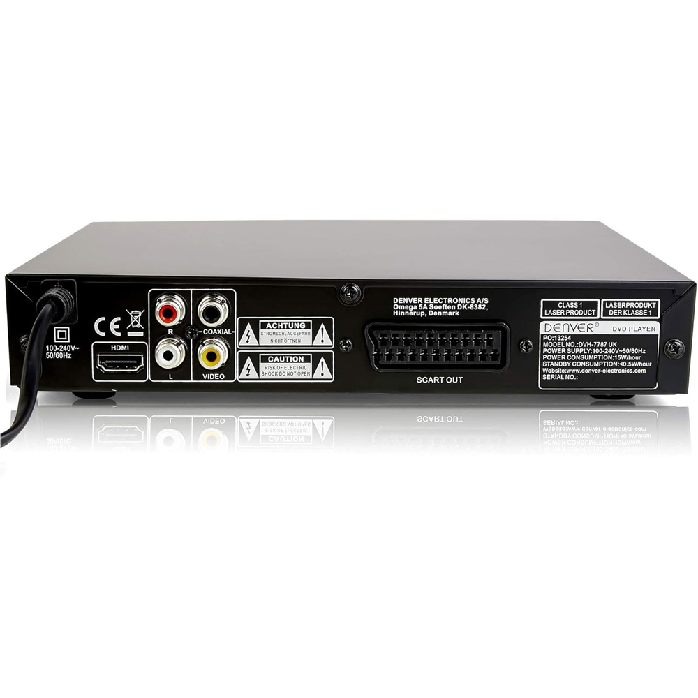 Upscale your old DVD collection to near HD quality using Denver’s new DVH-7787 UK multi region DVD player. Listen to DVD audio in full Dolby Digital surround sound using your surround sound audio system via the integrated Dolby Digital audio decoder. The DVD player works with both old and new TVs and offers a no hassle setup. Just connect to your TV via one of the supported audio / video connections (HDMI, Scart or RCA). You can also plug in your USB flash drive and playback your own movies or photos.