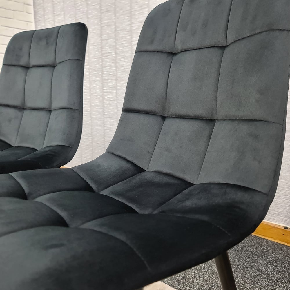 Add a lavish touch to your dining space with the Denver Black Velvet Dining Chairs Set. This classy set of six chairs will be a great addition to your dining room or kitchen. These chairs feature a classic curved back design with a soft velvet finish and cushioned seats for extra comfort. They also feature firm backrests with sturdy legs for stability and support. This set is easy to assemble with no additional tools required.