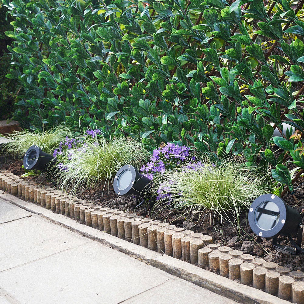 Enhance your outdoor area with the ValueLights Derwent Black Outdoor Spike Lights Set of 6. These modern outdoor garden lights feature a black aluminium finish. The lights can be used on the wall as a spotlight or in the ground as a spike light, providing lighting in bedding areas, along pathways, or around seating areas. They are ideal for creating a warm and inviting glow on your external walls or adding outdoor decorative lighting to your home. The complete set includes six lights, each with a five-watt warm white LED bulb.