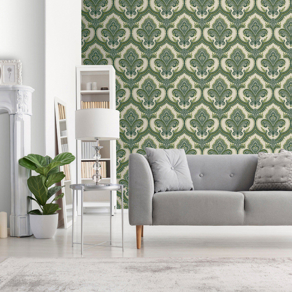 Bring a touch of nature indoors with the DID Damask Green Wallpaper. The deep green colour combined with a classic damask pattern adds both warmth and elegance to your interiors. Crafted from durable heavyweight vinyl, this wallpaper is suitable for high-traffic spaces such as hallways and living rooms. It features an easy "Paste the Wall" application and is extra washable, ensuring it remains fresh and beautiful over time. Ideal for adding a rich, natural element to any room.