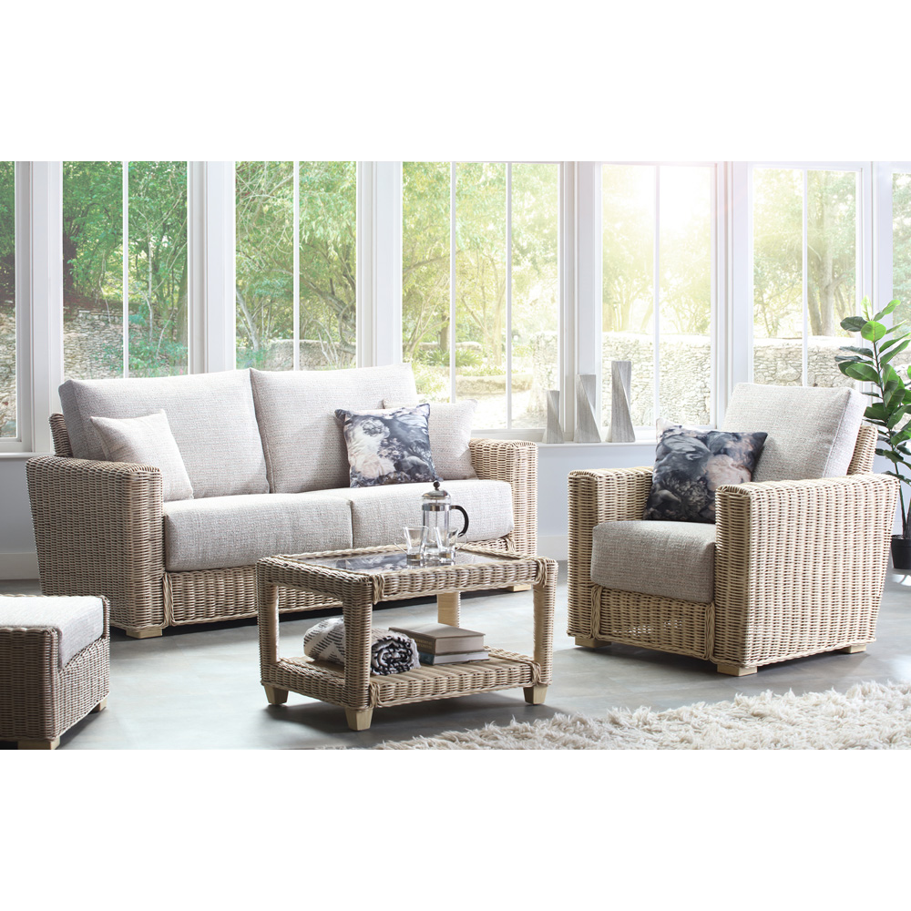 Elevate your decor with this Desser Burford 3-seater Blush Tweed Natural Rattan Sofa. Designed with comfort in mind, this sofa has an intricately woven rattan core and a thicker base cushion. Also, the wide armrests make it perfect to relax on those lazy days. Made in the UK, the cushions come in a blush tweed fabric (100% polyester) which is reversible and has a Dacron wrap perfect to conceal worn areas. Plus, the foam-filled seat cushions with supportive fibre-filled back are ideal for providing comfort. Easy to clean, the covers can be removed for dry cleaning.