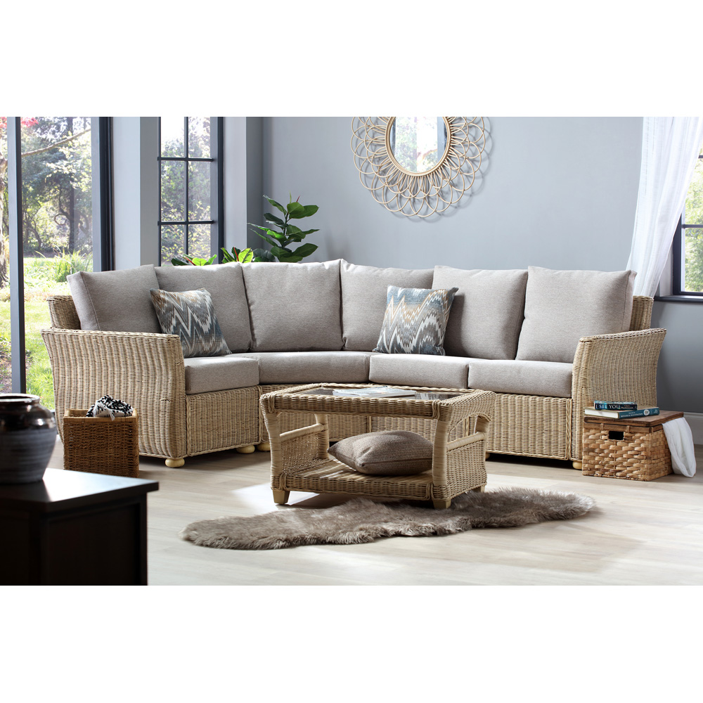 Add style and functionality to your space with the Desser Corsica Natural Wicker Coffee Table. This coffee table has been hand-crafted with natural rattan and a beautiful and durable wicker weave to make a great centrepiece for your conservatory or living room. Featuring a toughened glass top, it is designed to hold your daily items like cups, mugs, plates and any ornaments. Also, the table includes a lower storage shelf with weaved sides to hide your books, newspapers or magazines away without letting them slip off.