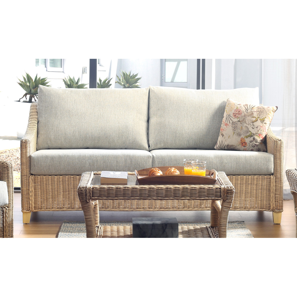 Make a stylish and practical addition to your living space with the Desser Dijon sofa. With its minimalist design and understated charm, it effortlessly combines sweeping arms and compact lines. The sturdy core rattan frame provides a solid foundation for this contemporary piece. The three-seater sofa is ideal for larger spaces, allowing you to relax and unwind with others. The lower back design ensures maximum comfort as you sink into the plush seats. The cushions, made in the UK, feature our Pebble fabric which is 100 percent polyester. They are reversible and the use of Dacron warp prevents any signs of wear. The seat cushion is filled with foam for added support, while the back cushion is filled with supportive fibre. The covers are also removable, making them easy to wash up to 30 degrees Celsius.