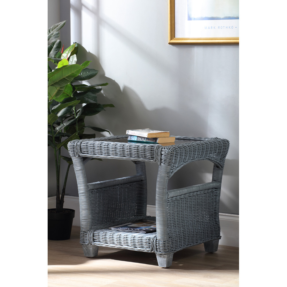 Understated charm and minimalistic style make this Desser Dijon Cane Grey Side Table perfect for anyone looking for modern indoor rattan furniture. The beautiful wicker weave and grey colour of the coffee table are sure to complement any decor style. Also, it comes with a 5mm toughened glass tabletop to provide support for your daily household items. Plus, the lower storage shelf with weaved sides is perfect for hiding your books, newspapers or magazines away without letting them slip off.