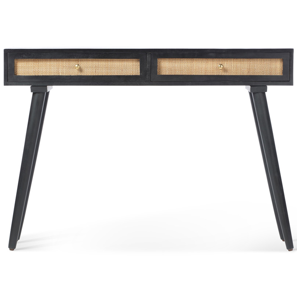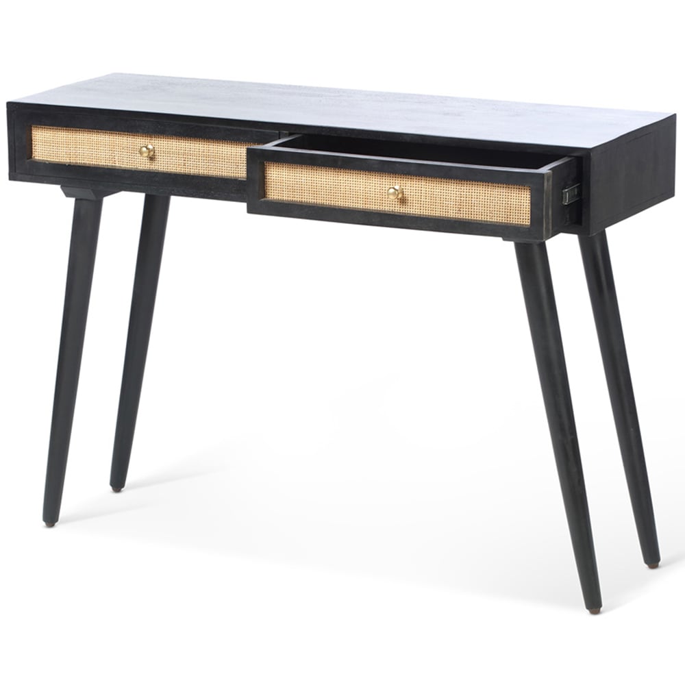 Desser Manhattan 2 Drawer Black Mango Wood and Rattan Console Table