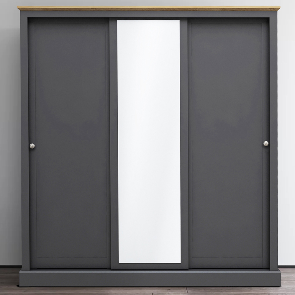 Devon 3 Door Charcoal Sliding Wardrobe