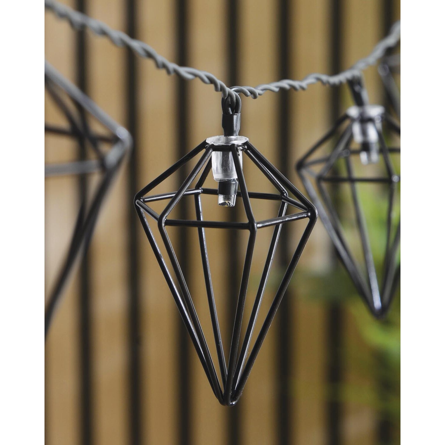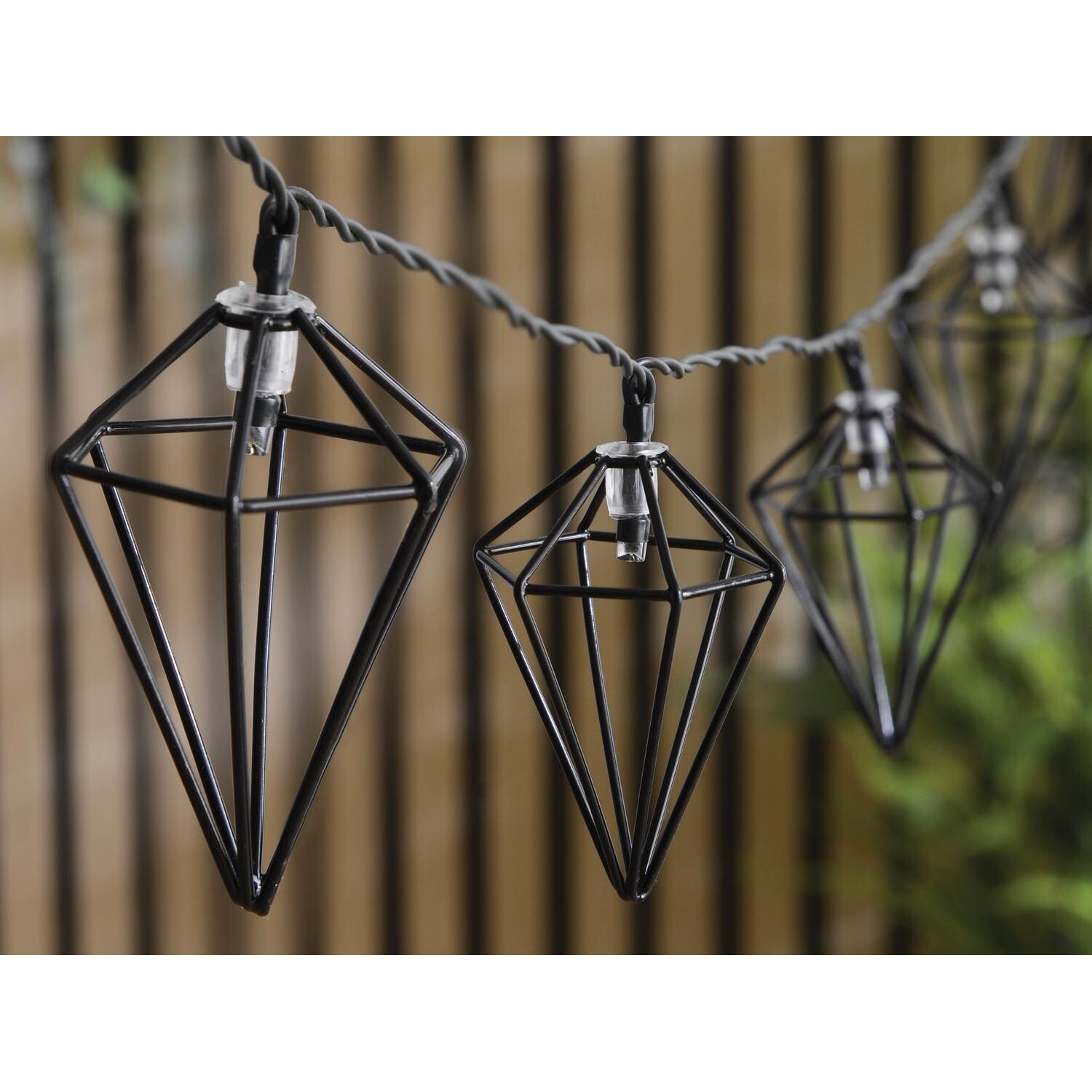 A string of 20 solar lights, the Solar Diamond LED String Lights are fun and easy to install. These string lights feature 20 LEDs that glow in diamond-shaped cases. They turn on automatically at night and are an attractive, environmentally friendly addition to your garden.