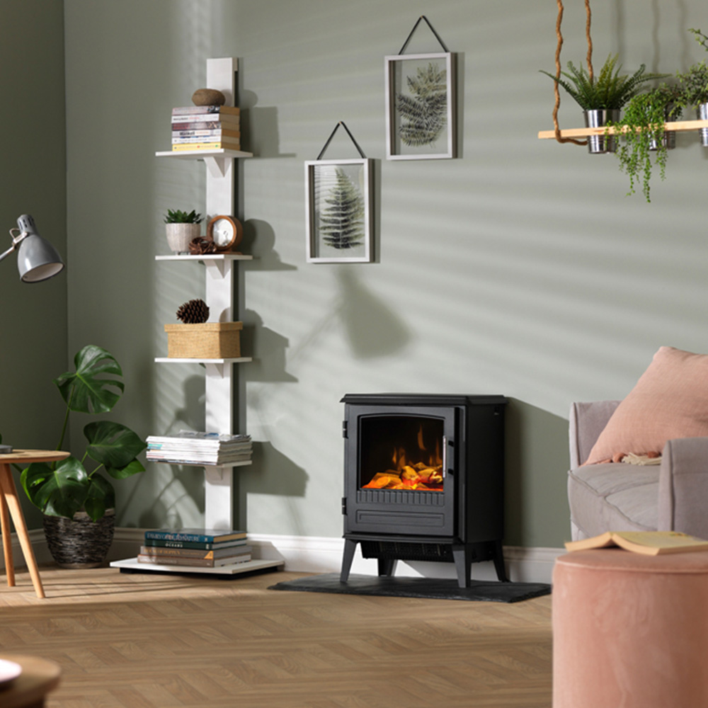 The Dimplex Bari Electric Stove has a classic modern design perfect for all interiors. With an opening door and chrome detailing, this stove really looks the part. It's simple plug in and go installation means that it can be placed anywhere in the room, near a plug socket and offers a gentle burst of heat to take the chill out of the room. The Dimplex Bari electric stove comes with an easy to use remote control as standard to operate the heat and light settings. It features 2 heat settings,1kW and 2kW, and can also be used without any heat should you want to use the stunning Optiflame effect by itself on those warmer evenings. The highly realistic log effect fuel bed makes this stove almost identical to a real wood burner. This product is only suitable for well insulated spaces or occasional use.