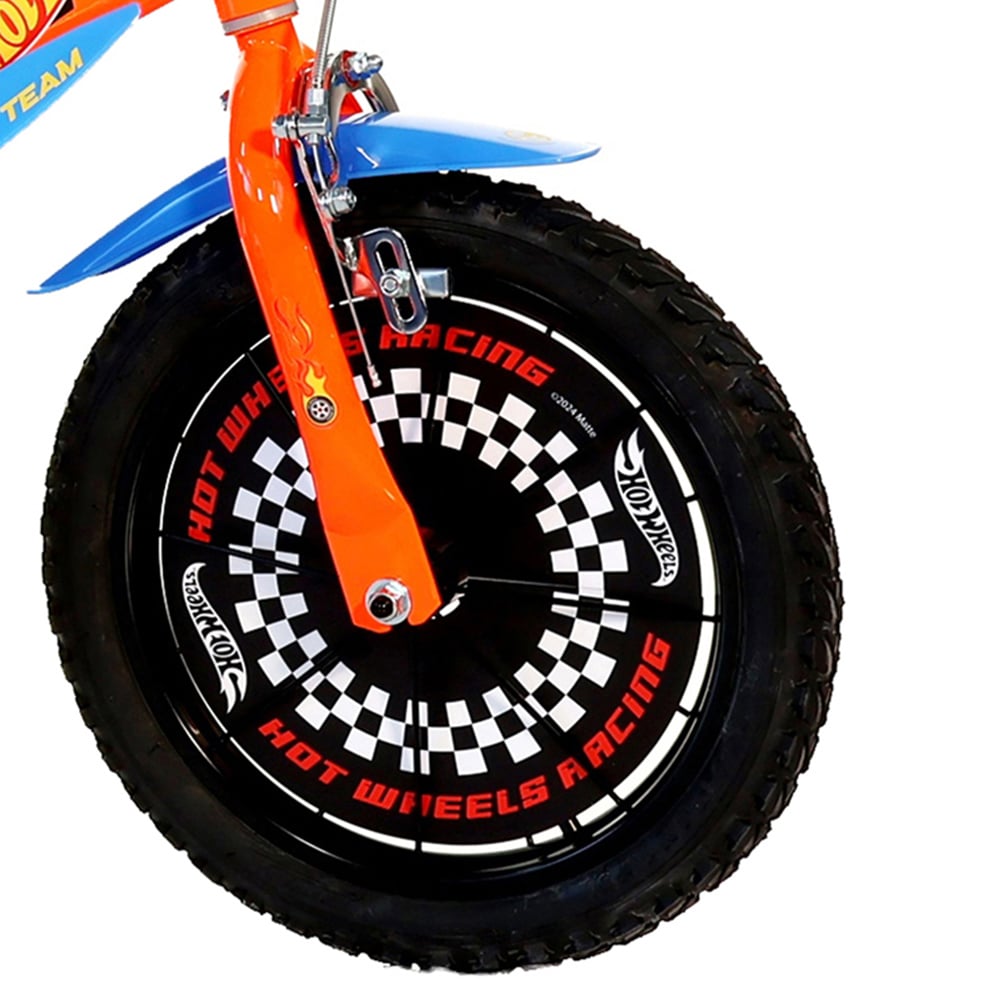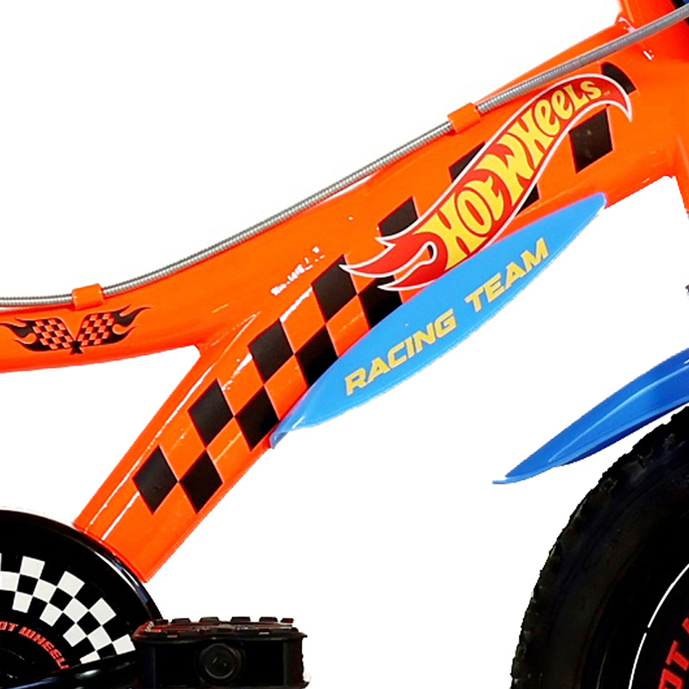 This Hot Wheels licensed 16inch bicycle comes with front and rear brakes, freewheeling rear wheel, pneumatic tyres with spoked wheels and mudguards and also comes with removable stabilisers. This 16inch Hot Wheels bicycle also comes with an adjustable saddle and handlebars and has colourful Hot Wheels decals, a drinks bottle and holder at the back of the bicycle and a large Hot Wheels front shield. Suits ages 5 - 8 years. Child height range 107 - 138cm.