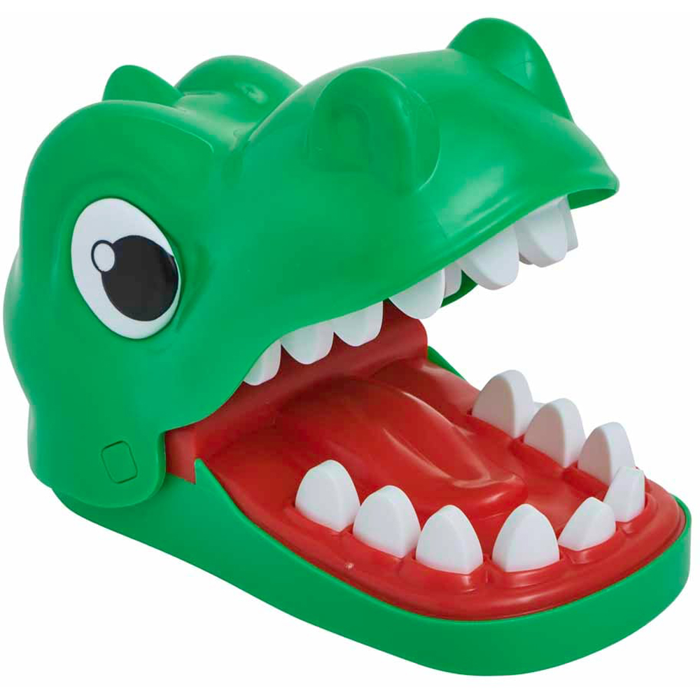How many teeth can you pull out in this Dino Dentist Game? Take turns to press a tooth, but be careful, when you press the dinosaur's sore tooth he'll bite your finger! Suitable for ages 3+ years. Warning: Not suitable for children under 36 months. Small parts. Choking hazards.