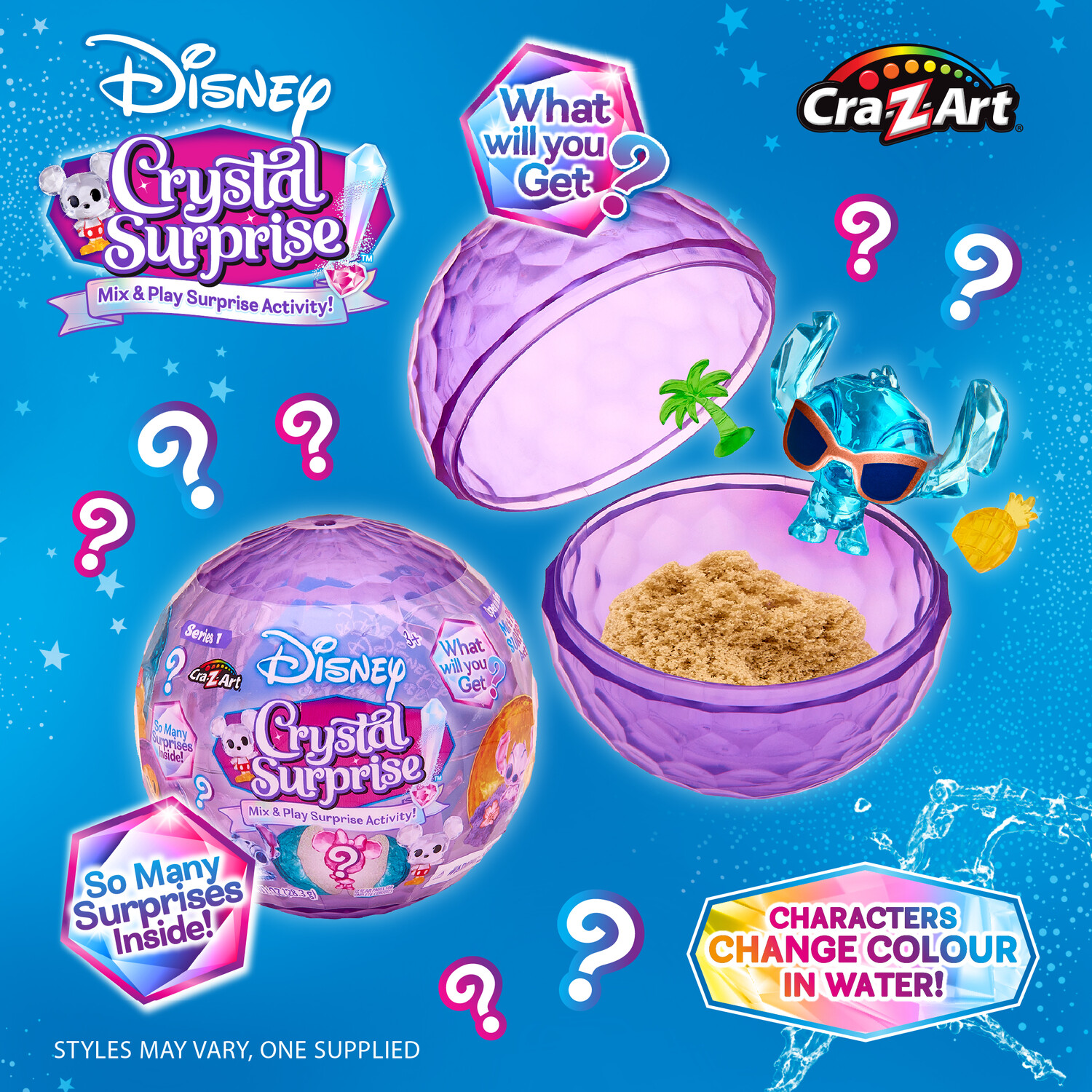 Unleash the magic of Disney with the Disney Crystal Surprise Collectable. This assorted collectable toy comes with a surprise 1.5-inch mini figure of your favourite Disney character, along with two adorable accessories to enhance playtime. Watch in amazement as the mini crystal character features a dazzling colour change! Simply dip your figure in warm water and witness the magic as a part of it transforms to a matte finish, returning to its original colour minutes later. Whether as a gift for a birthday or Christmas, this toy is perfect for adding a dash of excitement to any day.