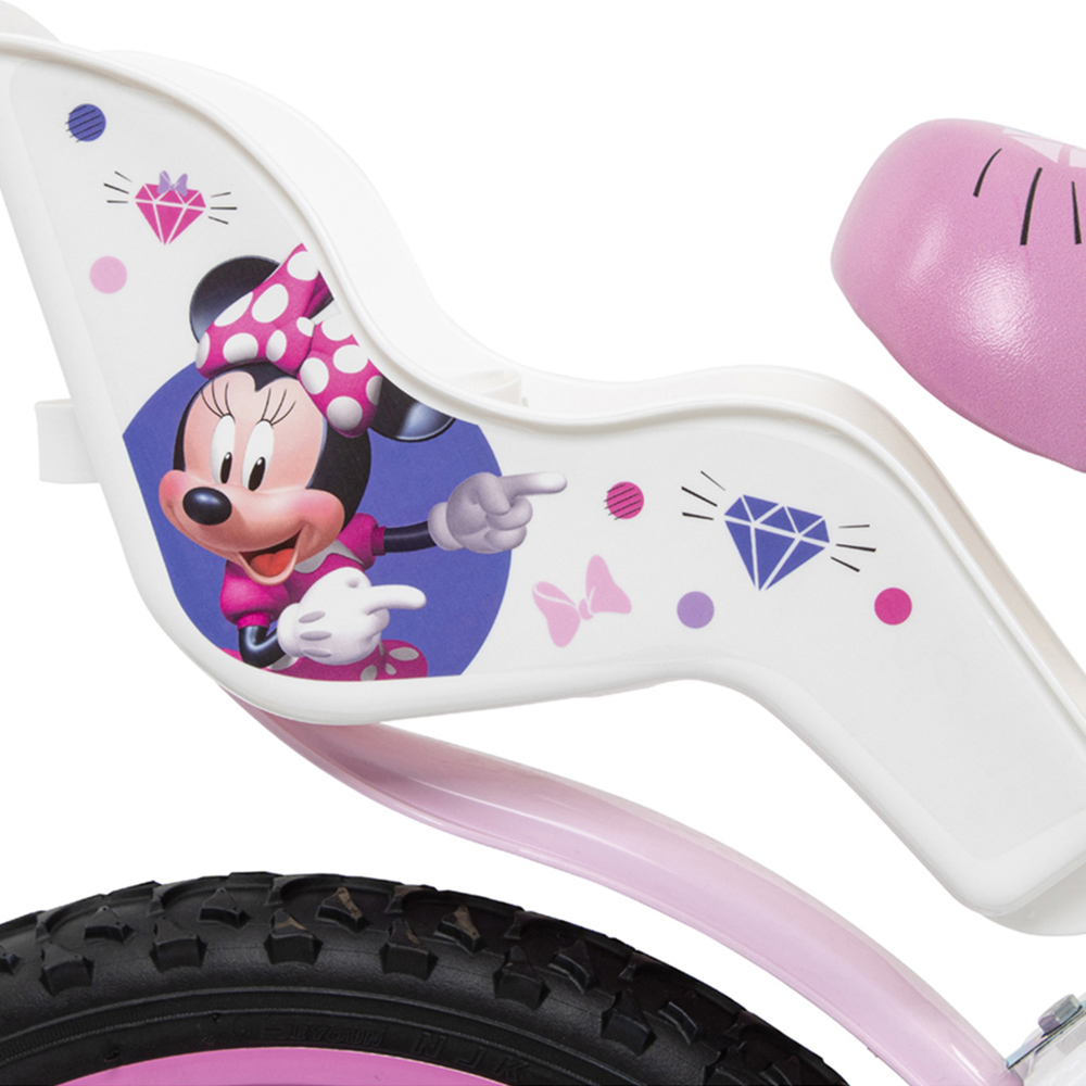 Prepare to take your little ones on an exciting adventure with the Disney Minnie 16-inch Bicycle 5-7 Years. This Disney Minnie licensed bicycle is equipped with a front calliper brake and a rear drum brake. It has 16-inch pneumatic tyres on spoked wheels with mudguards, as well as removable stabilizers. Additionally, it features an adjustable saddle and handlebars, with colourful Disney Minnie decals and a rear doll carrier with a strap and a front basket. This bicycle is suitable for children ages five to seven years with a height ranging from 100-110 cm.