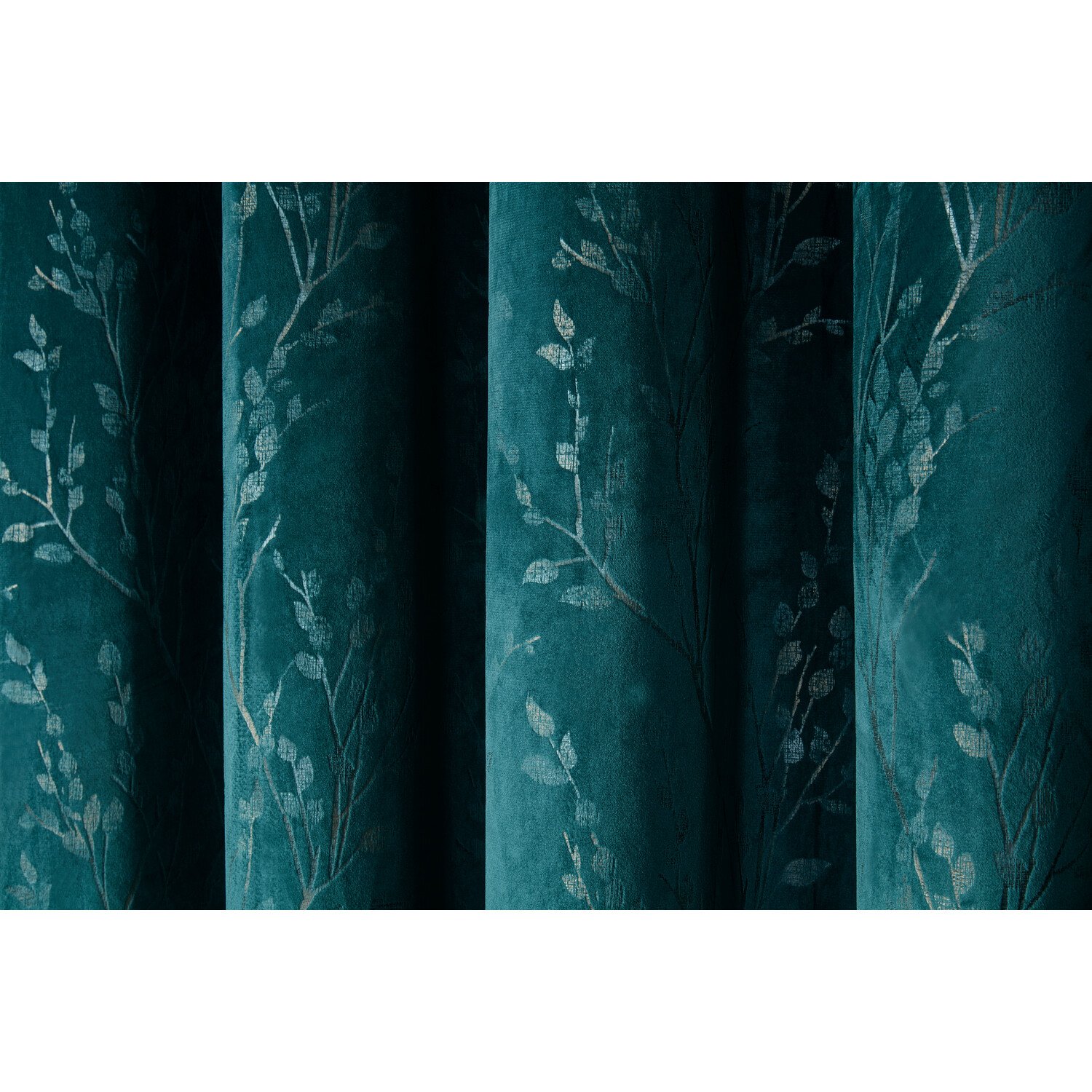 Bringing elegance and style to your home, these Avery Velvet Eyelet Curtains are a must-have. With a rich velvety teal, these curtains have a delicate botanical pattern with subtle metallic details. This contemporary style is an asset to your living space which is also perfect for reducing the light and increasing your privacy. To elevate your window design, these velvet curtains are ideal.