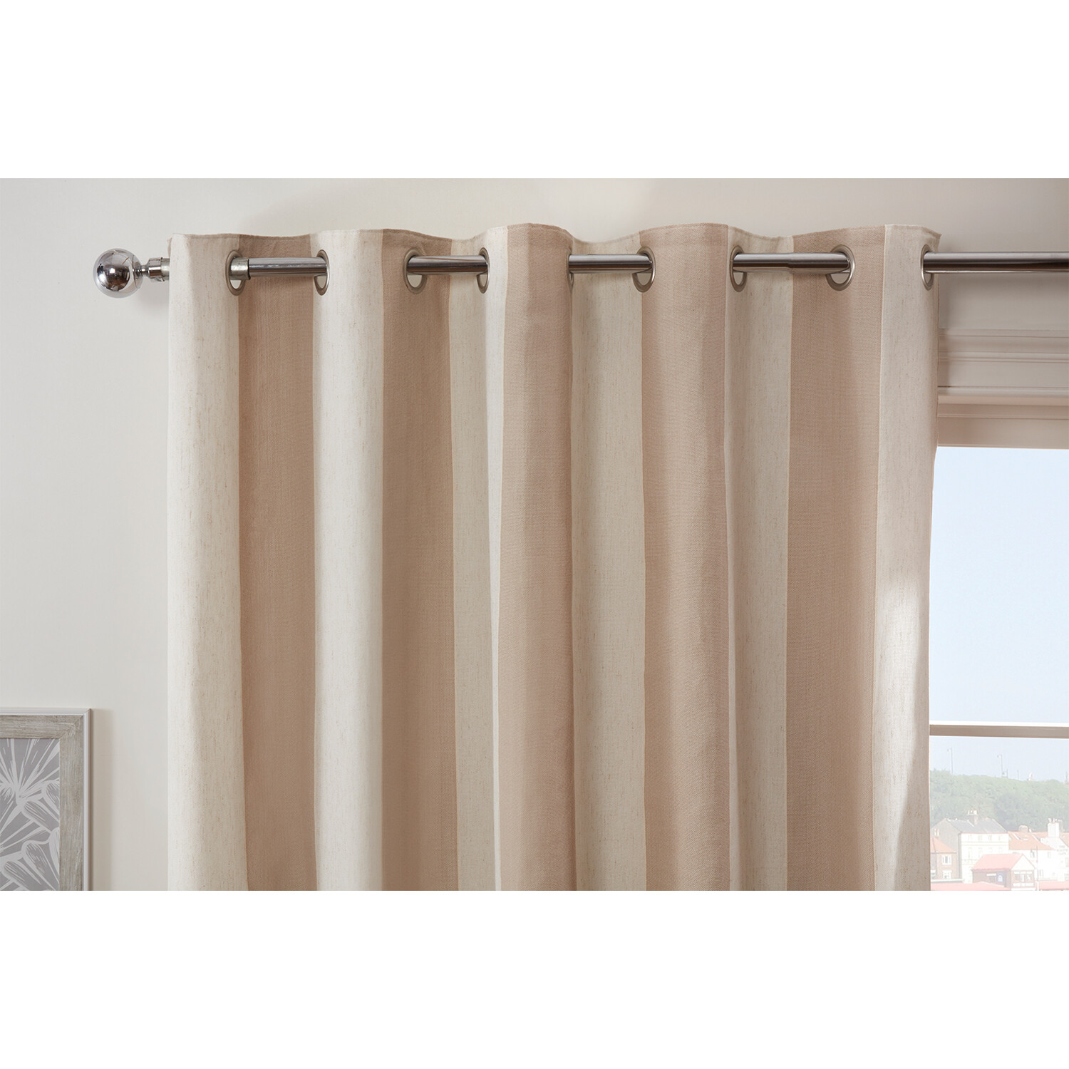 A versatile and classic choice for any warm and homely theme, these Coastal Stripe Eyelet Curtains feature a vertical stripe pattern in comforting and cosy neutral tones. Flowing down from eyelet headers, these modern curtains will seamlessly harmonise with your existing furnishings to give your living room, bedroom, or home office the perfect finishing touch.