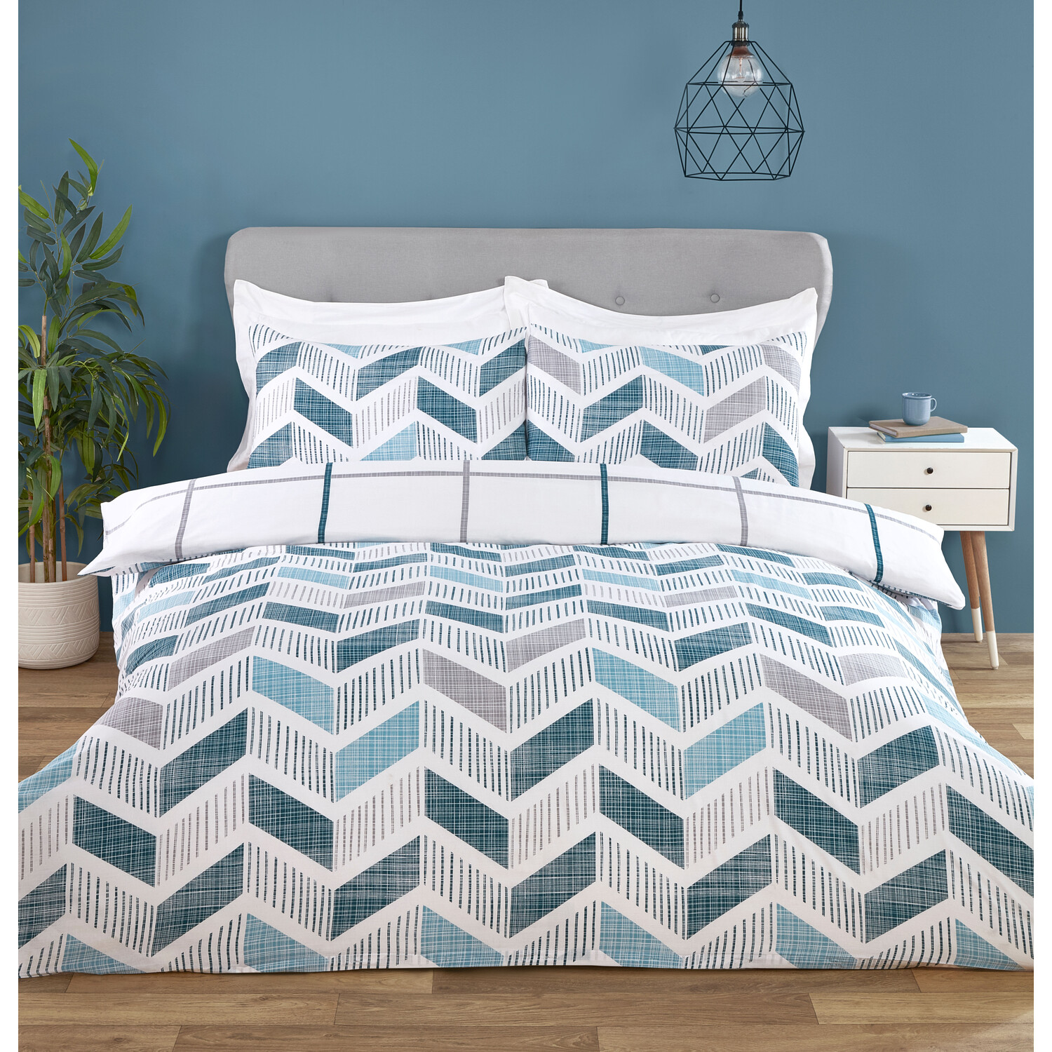 Upgrade your bedroom with this super stylish Nevada Duvet Cover and Pillowcase Set. This modern duvet set is reversible, boasting a geometric design on one side and a wide check on the other, so you can choose which trendy pattern to have each day. Available in teal or ochre, this contemporary duvet cover comes with matching pillowcases.