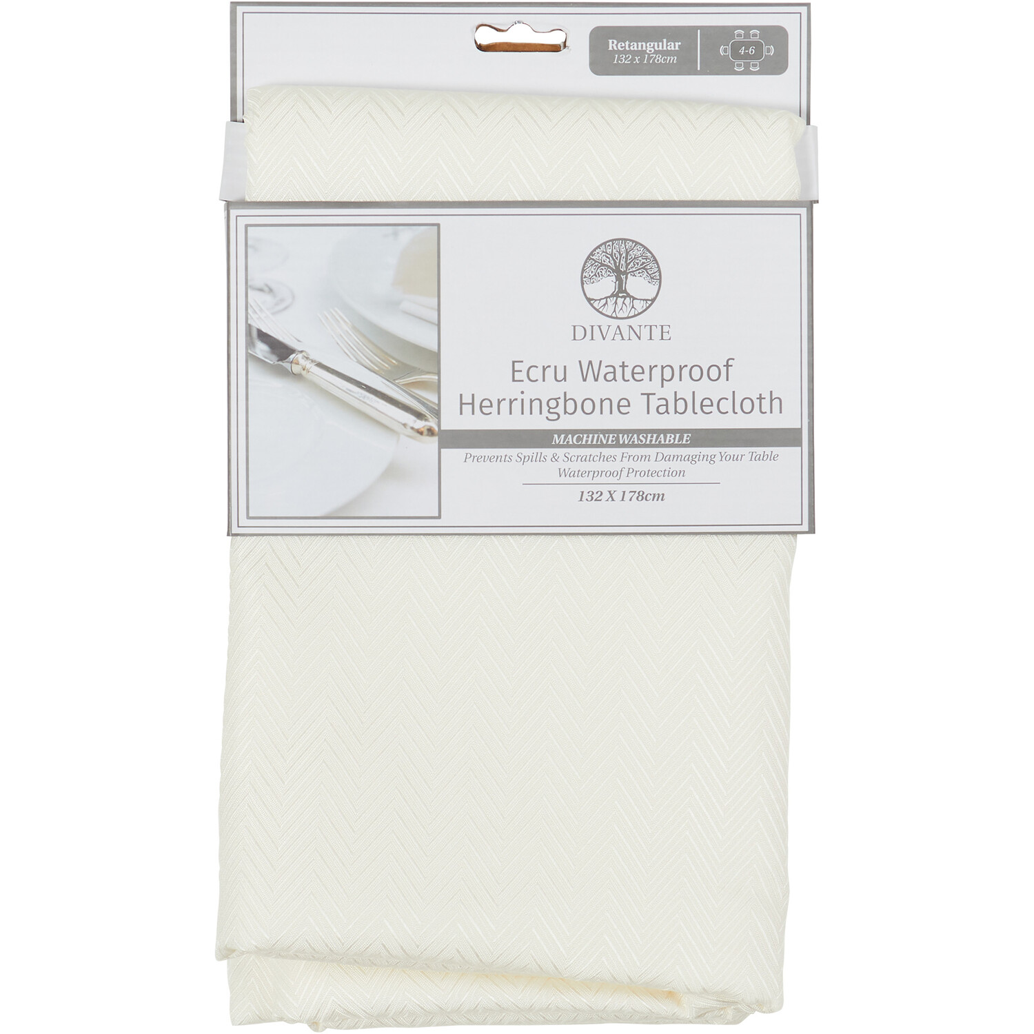 Our stunning Ecru Waterproof Herringbone Tablecloth is a practical and stylish addition to your dining table. The tablecloth has a subtle herringbone design to suit all occasions throughout the year in a neutral tone to coordinate elegantly with your dining space. It's machine washable for your convenience and is waterproof for easy cleaning and care. It helps protect your dinner table from spills, scratches, and heat damage to leave it looking its best for longer.