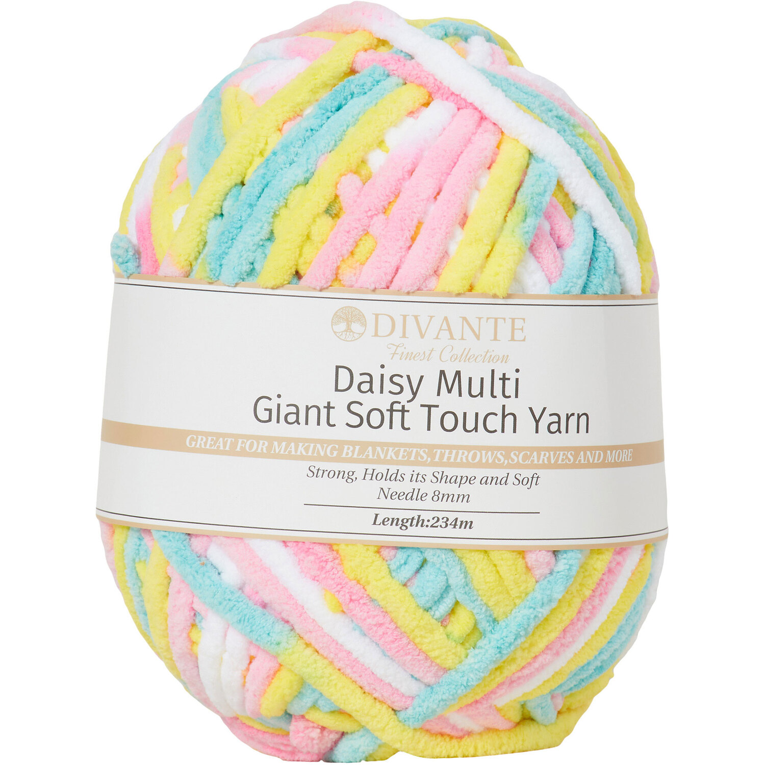 Create your next knitted masterpiece with this Divante Giant Soft Touch Yarn. Delightfully cosy, it's great for making blankets, scarves, hats and so much more! This thick and sumptuously soft yarn is strong and holds its shape, making it a versatile addition to any knitter's collection.