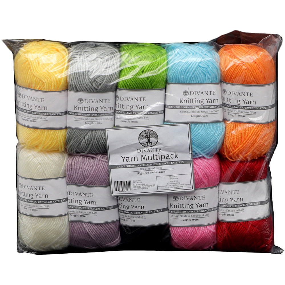 See what wonderful creations you can make with this Divante Yarn Multipack. With ten different colours included, you can create a variety of colourful knits for any occasion. Whether you're a keen knitter or new to needlecraft, this yarn is soft to the touch and holds its shape well, so it's perfect for anyone.