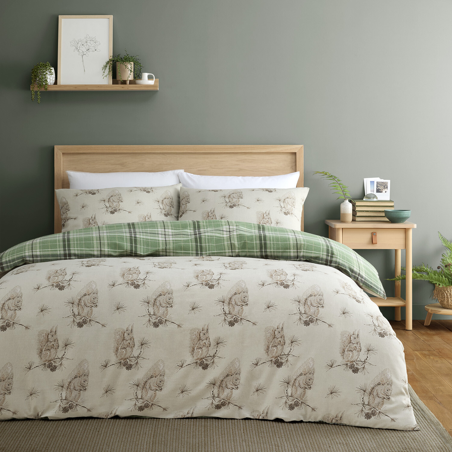 Give your home a cosy, traditional feel with this Newbridge Forest Duvet Cover and Pillowcase Set. Exclusive to the Divante collection at The Range, this double-sided duvet set features a green check pattern on one side and a neutral squirrel woodland design on the reverse. Perfect for creating a rustic feel in your bedroom, this set is comfortable, soft and easy to care for, so you can sleep soundly.