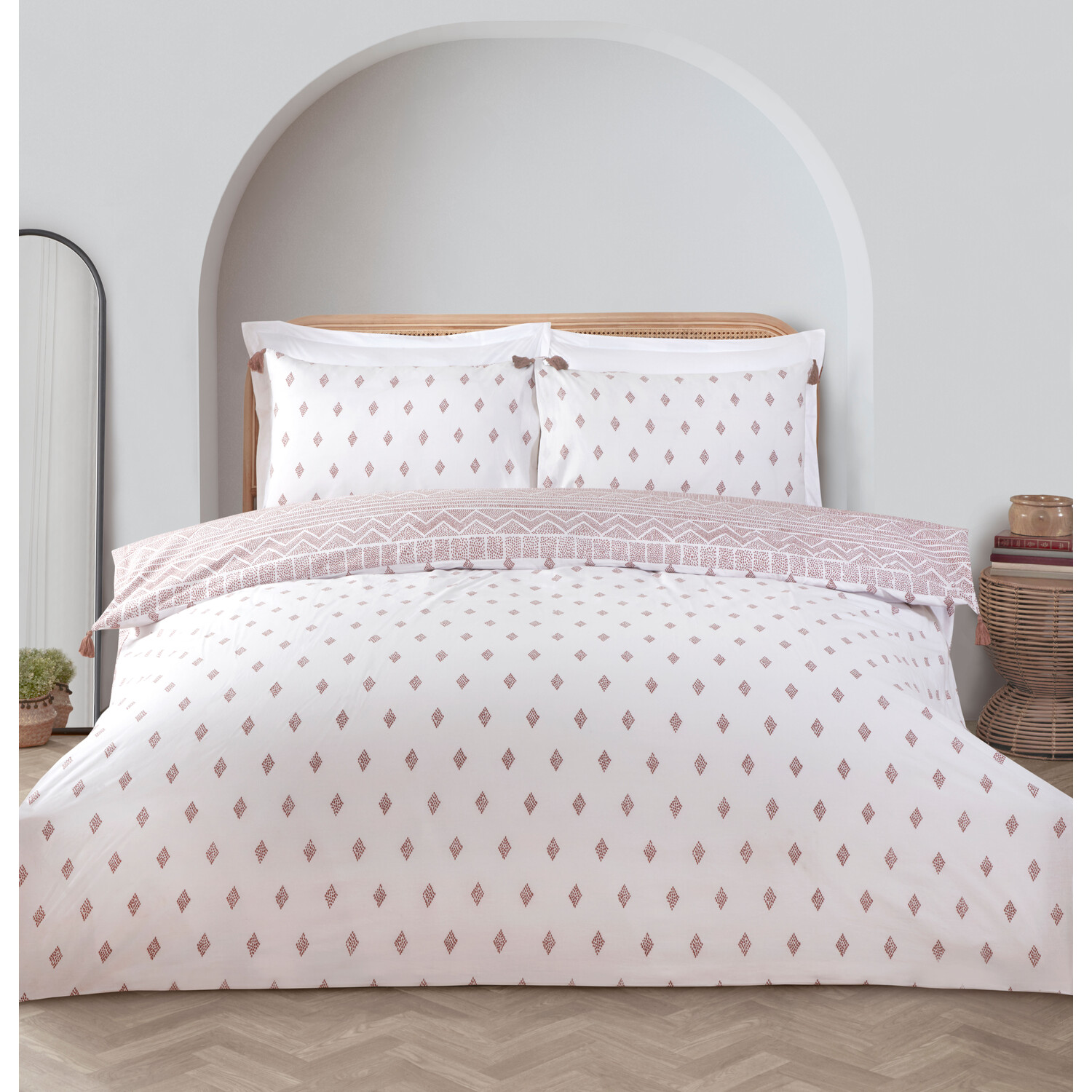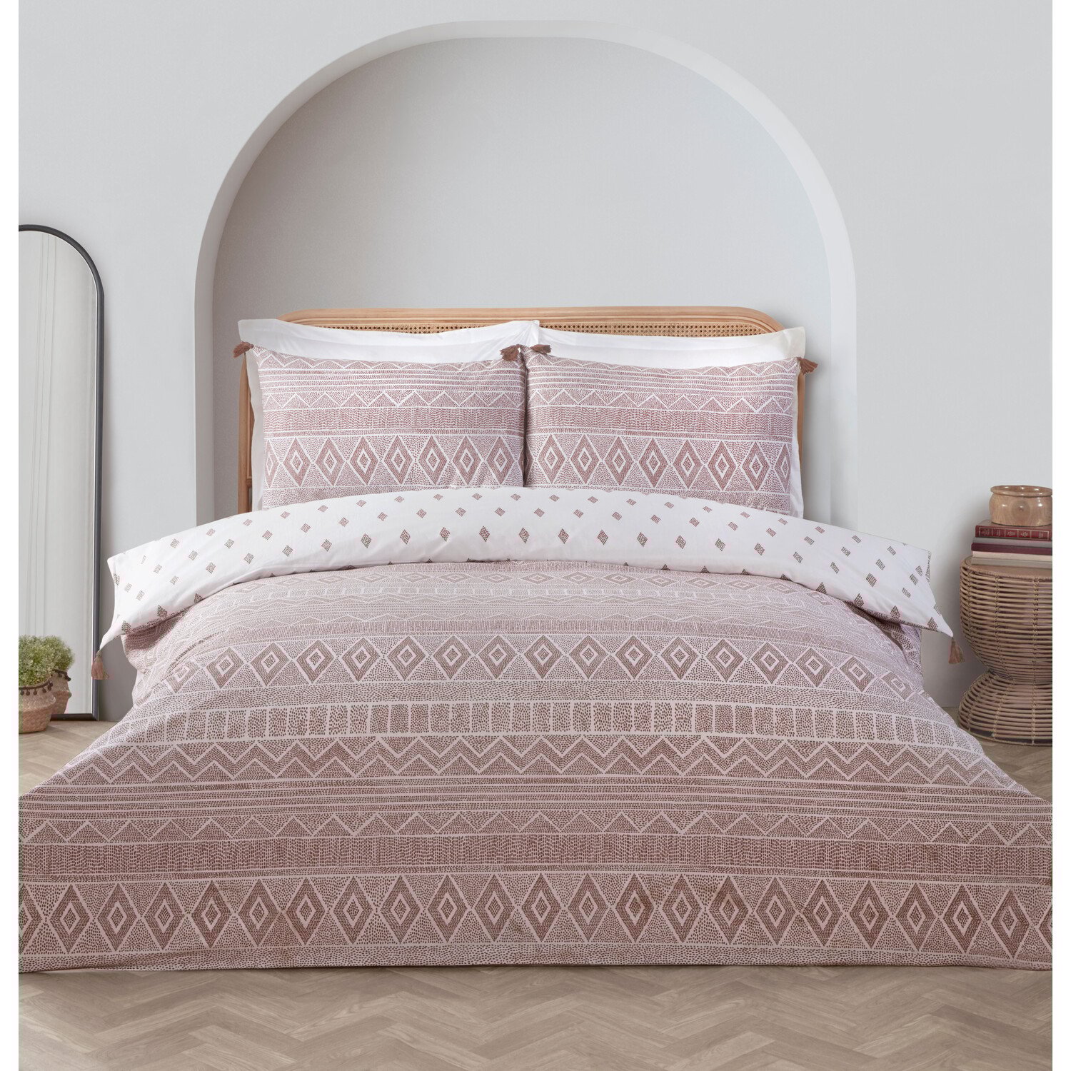 Add a gentle flair of colour to your space with this Talia Duvet Cover and Pillowcase Set. Featuring a geometric pattern inspired by Aztec design, this bedding has tasselled corners for added texture and unique styling. A great way to update your bedroom, this set is soft and comfortable with a reversible design, making it a wonderful choice for any home.