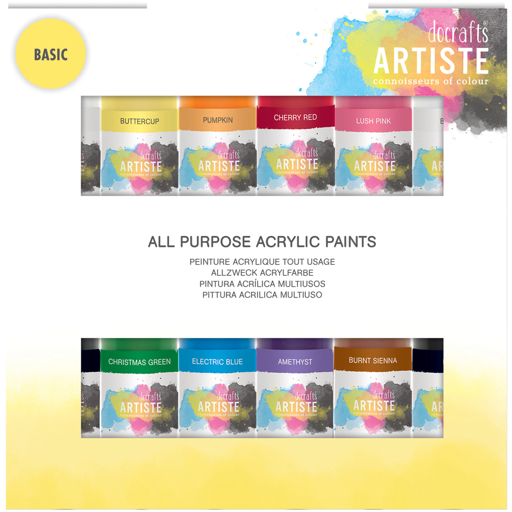 Docrafts Artiste Basic Acrylic Paint 12 Pack