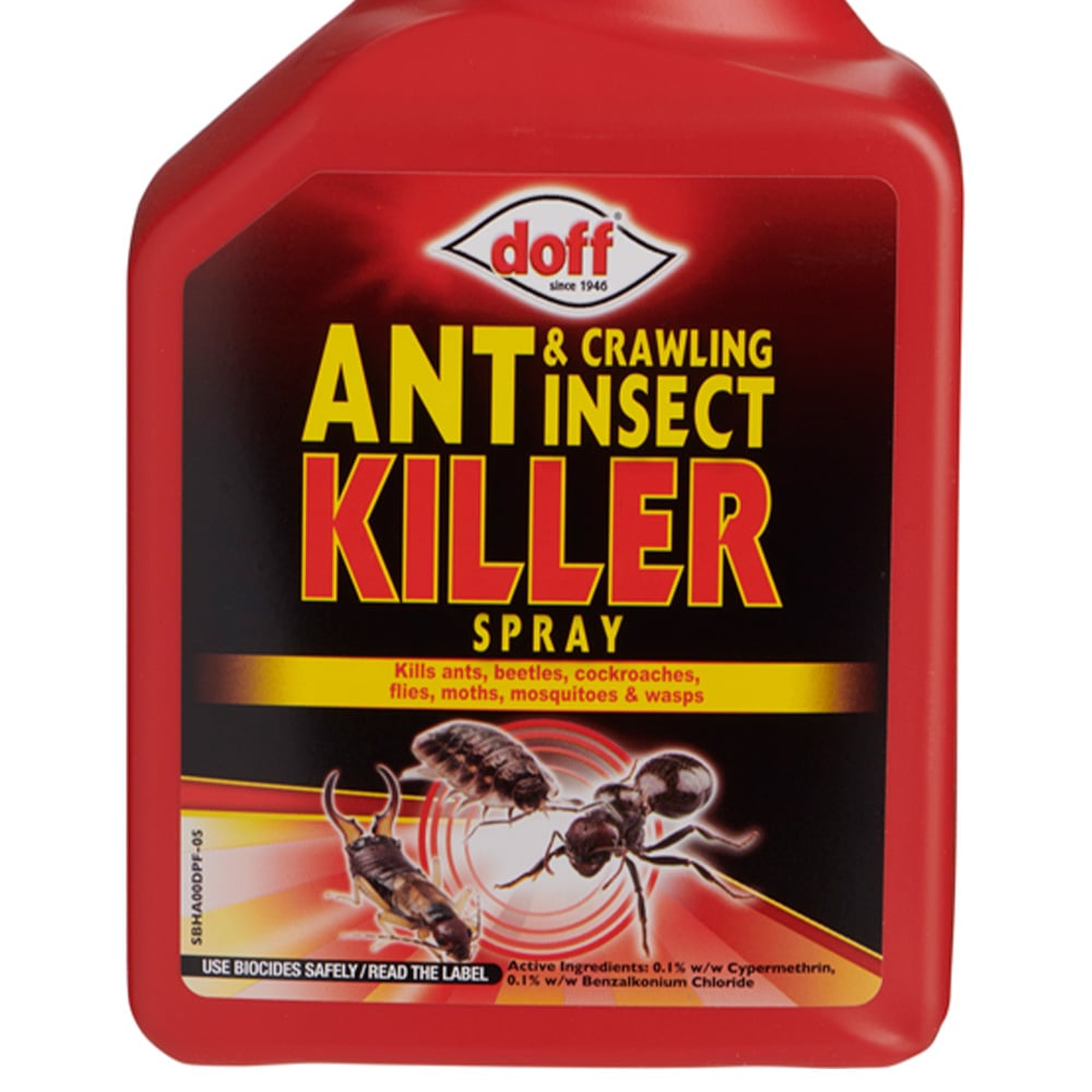 The Doff Ant and Crawling Insect Killer is an insecticide for amateur use against crawling and flying insects such as ants, beetles, cockroaches, flies, mosquitoes, moths and wasps. This ready-to-use formula with added antibacterial action is ideal to be applied in and around the home. Size: 1L. Directions for use: Shake gently before use. Apply at a rate of 20-50ml per sqm. (1L per 25-50 sqm). Always try on a small inconspicuous area first. After use, ensure the nozzle is returned to the off position. Please note that the insecticide is safe for family or pets when used as directed.