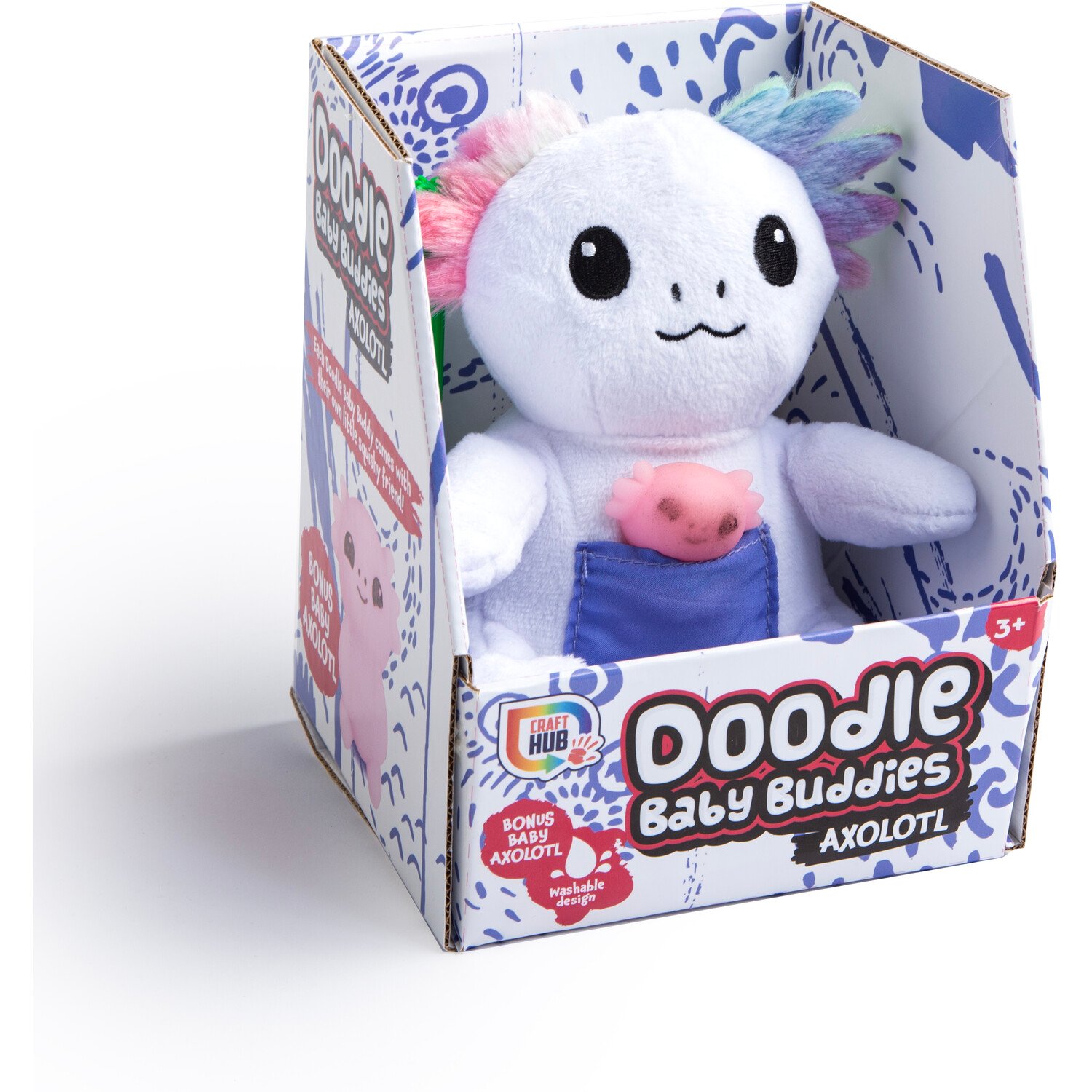 Doodle over and over again with this washable Doodle Baby Buddy. This adorable friend comes with three colourful washable markers to personalise your squishy pal! Available in an assortment of three designs, you will receive either a dinosaur, a koala or an axolotl!