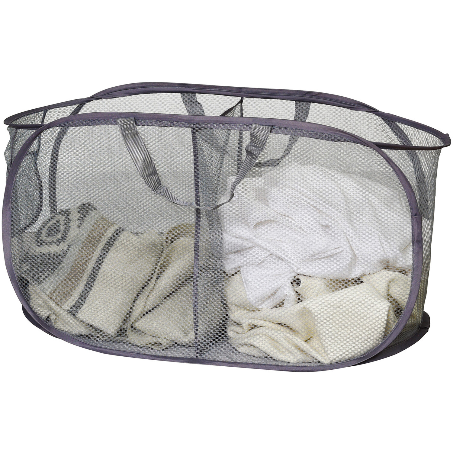 Make a practical addition to your home with this Double Pop Up Mesh Laundry Hamperr. This versatile hamper features two sections, perfect for sorting light and dark clothes before washing. Great for organising your space, you can also use it to store other essential items. Lightweight and easy to fold, simply store this laundry hamper away when not in use.