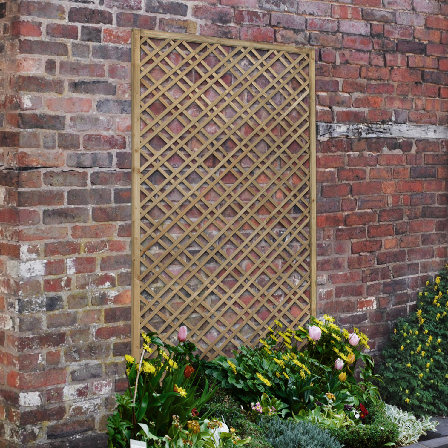 This Double Slatted Diamond Lattice is an interesting design variation of traditional garden lattice and trellis designs. Designed to make a decorative feature of a garden wall or fence, it can also function as a garden screen that still lets plenty of light through and provides a perfect framework for training climbing plants such as roses or ivy. Available in 3 widths.