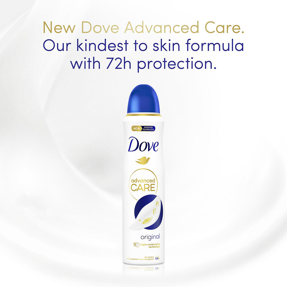 The New Dove Advanced Care is the most caring antiperspirant range with triple moisturizing technology. Effective 72h protection, kind to skin, even after shaving. The fragrance in this aerosol keeps you feeling clean, fresh and confident. It is not tested on animals and is certified as cruelty-free by PETA. With its signature fragrance, this reviving antiperspirant deodorant aerosol is just the thing to help you kick-start your day with confidence and keep you smelling fresh and clean all day long. Directions: Shake well, hold the can 15cm from the underarm and spray.