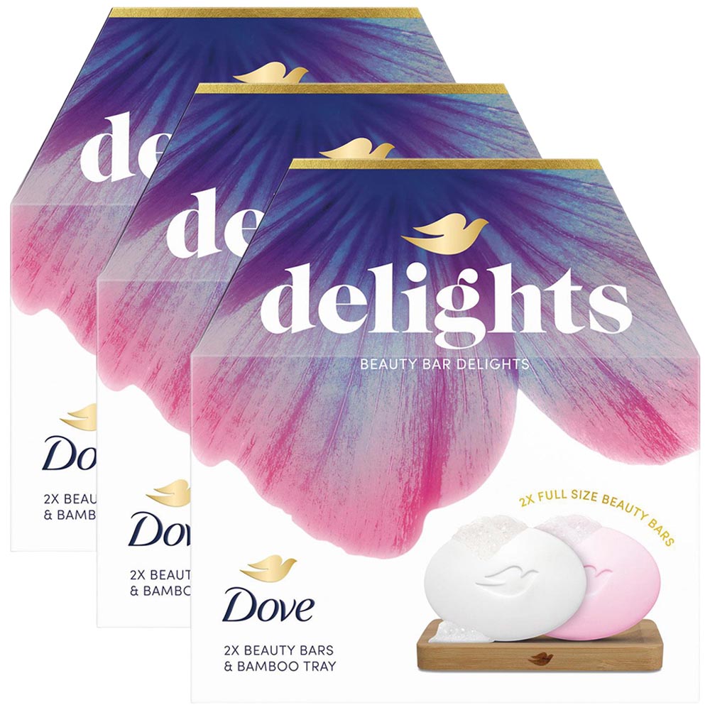 Dove Beauty Bar Delights Original and Pink Soap Gift Set with Bamboo Tray 3 Pack