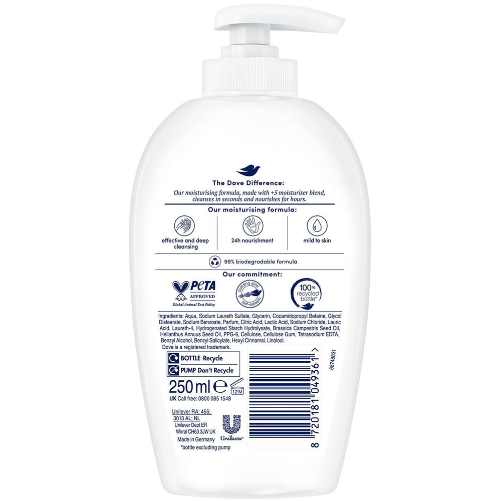 This Dove hand wash cleanses your hands with a special formulation enriched with moisturising cream, leaving your skin soft and smooth. The gentle, moisturising formula helps retain hydration, making the Dove Nourishing Hand Wash suitable for everyday use. With each wash, it provides silky, smooth hands. Enriched with ¼ moisturising cream, this hand wash is designed to nourish your hands while cleansing them. Transform your daily handwashing routine into an act of beauty with this moisturising liquid soap, which contains an antibacterial ingredient for effective cleansing. It's perfect for everyday use and leaves your hands feeling soft and smooth. Discover the new formula, now 99% biodegradable. How to use: Pump into your hand and work into a creamy lather. Rinse off with clean water after a gentle massage. Safety Warnings: If the product gets into your eyes, rinse them with warm water. Avoid contact with the eyes and other sensitive areas.