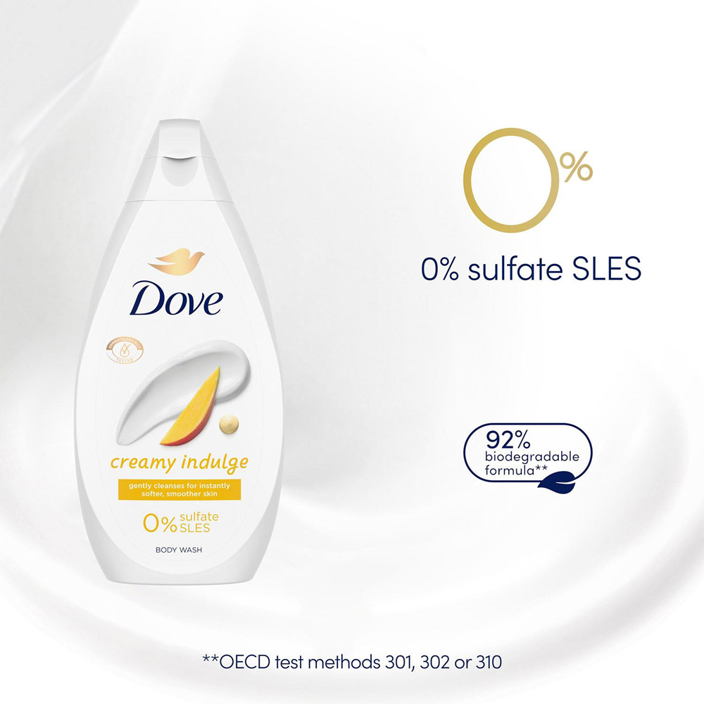 Dove Body Wash Creamy Indulge Moisturising Shower Gel, 4-Pack of 450 ml If you're looking for a body cleanser that doesn't harm your skin but instead cares for it every day, it's time to try Dove Creamy Indulge Body Wash. This moisturising shower gel blends all the nourishing care you love from Dove with mango nectar & tropical, floral notes to invigorate your senses and leave your skin softer and smoother after just one shower. Features: Dove Creamy Indulge Body Wash gently cleanses and gives you softer, smoother skin after just one shower Made with 100% gentle cleansers and 0% sulphate SLES, the body cleanser doesn't strip moisture from your skin but instead replenishes it from within* This hydrating body wash nourishes deep into the surface layers of your skin while revitalising your senses with its tropical, floral scent This gentle shower gel formula protects your microbiome (your skin's protective layer) This body cleanser is made with plant-based moisturisers to leave your skin soft, smooth and cared for Discover Dove's gentlest ever SLES-free body wash, packaged in a 100% recycled plastic bottle (excluding cap and labels). How to Use: Squeeze the body wash generously between your palms or onto a shower puff, work into a creamy lather and massage all over your body, then rinse thoroughly. Avoid contact with eyes. Box Contains: Dove Body Wash Creamy Indulge 4-Pack of 450 ml
