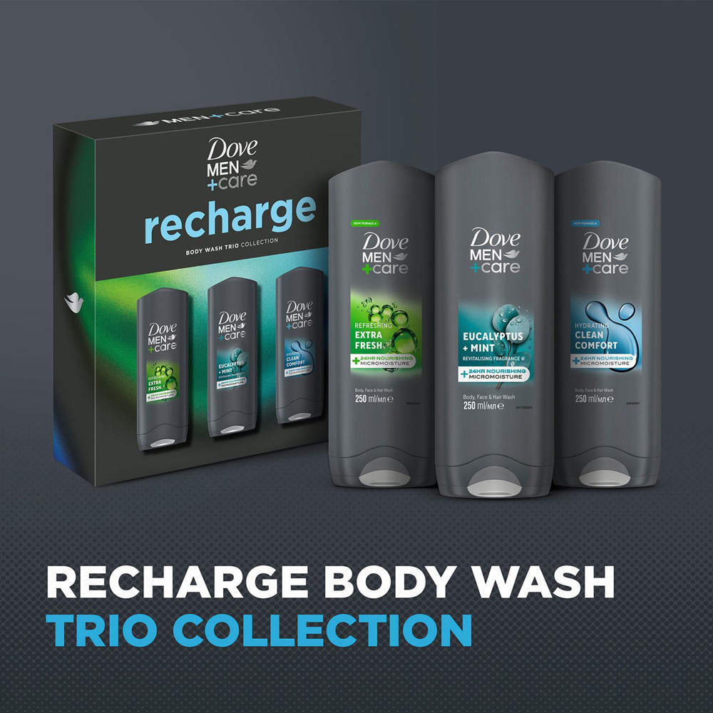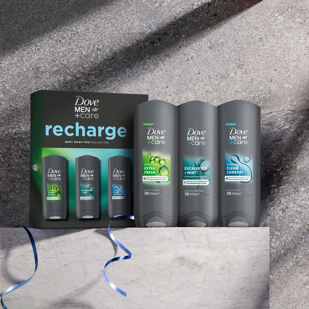 Energise daily routines with a revitalising blend of eucalyptus and mint, delivering comfort and freshness in every use. Dove Men+Care brings together a Recharge Trio in a convenient pack, perfect for those who enjoy a refreshing start or need a thoughtful present. Designed for sensitive skin, this set includes a bodywash and deodorant that work together to keep you feeling clean and confident. Whether it's for yourself or as a gift, you'll appreciate the invigorating scent and gentle care.