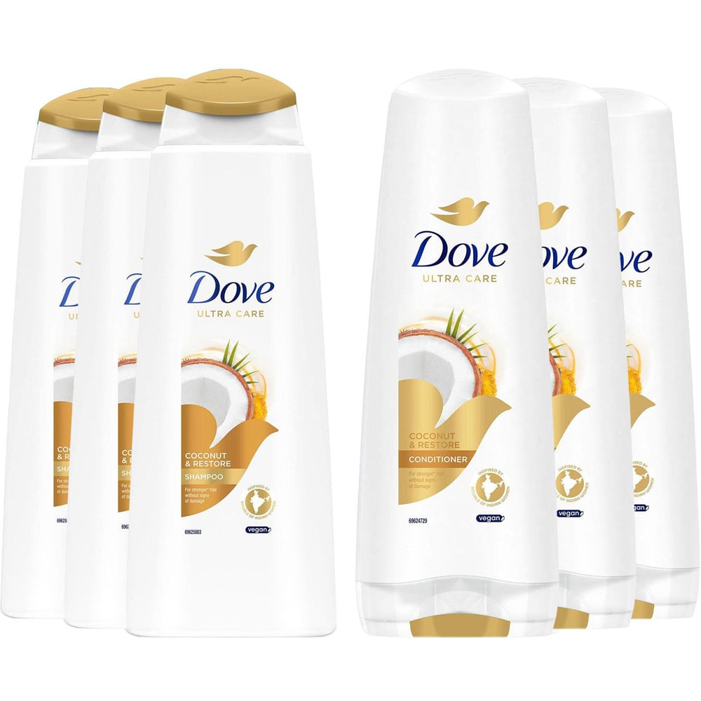 Dove Nourishing Secrets Repairing Shampoo and Conditioner are specifically designed to nourish and visibly repair damaged hair. They are inspired by the beauty rituals of Indian women, who use blends of coconut oil and turmeric—ingredients renowned for their caring properties. On the other hand, Dove Nourishing Secrets Strengthening Ritual Shampoo and Conditioner draw inspiration from Central American traditions that focus on treating hair breakage with a blend of avocado extract and calendula. These ingredients are also known for their nurturing benefits. Overall, Dove's restoring ritual is influenced by the hair beauty practices of Indian women, featuring a nourishing shampoo enriched with coconut oil and turmeric that helps restore and strengthen damaged hair.