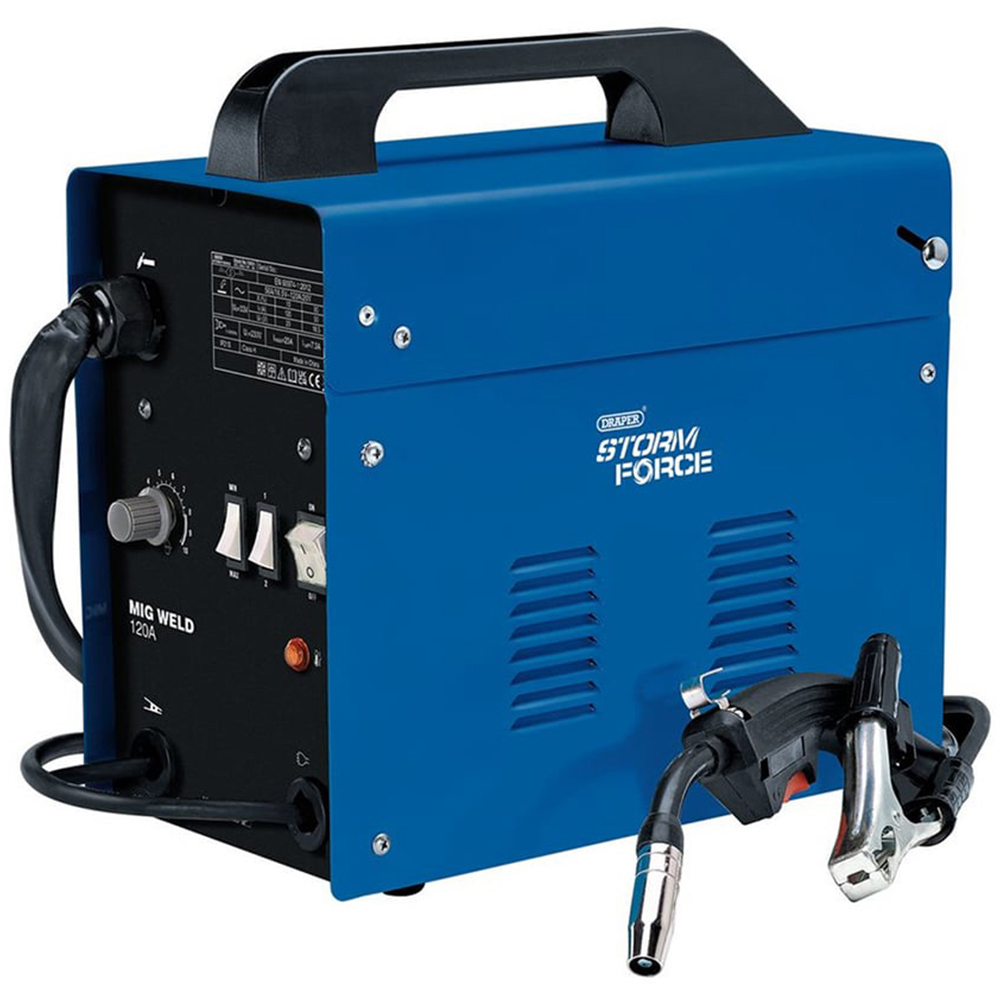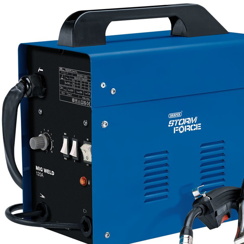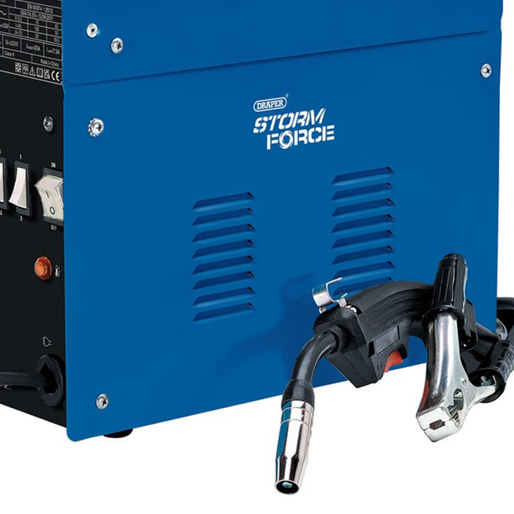 This Draper Gasless MIG welder utilises flux-cored wire, making it suitable for welding outside. The adjustable power settings and variable wire speed control provide optimum results for a wide range of work. Lightweight and portable with a carry handle.