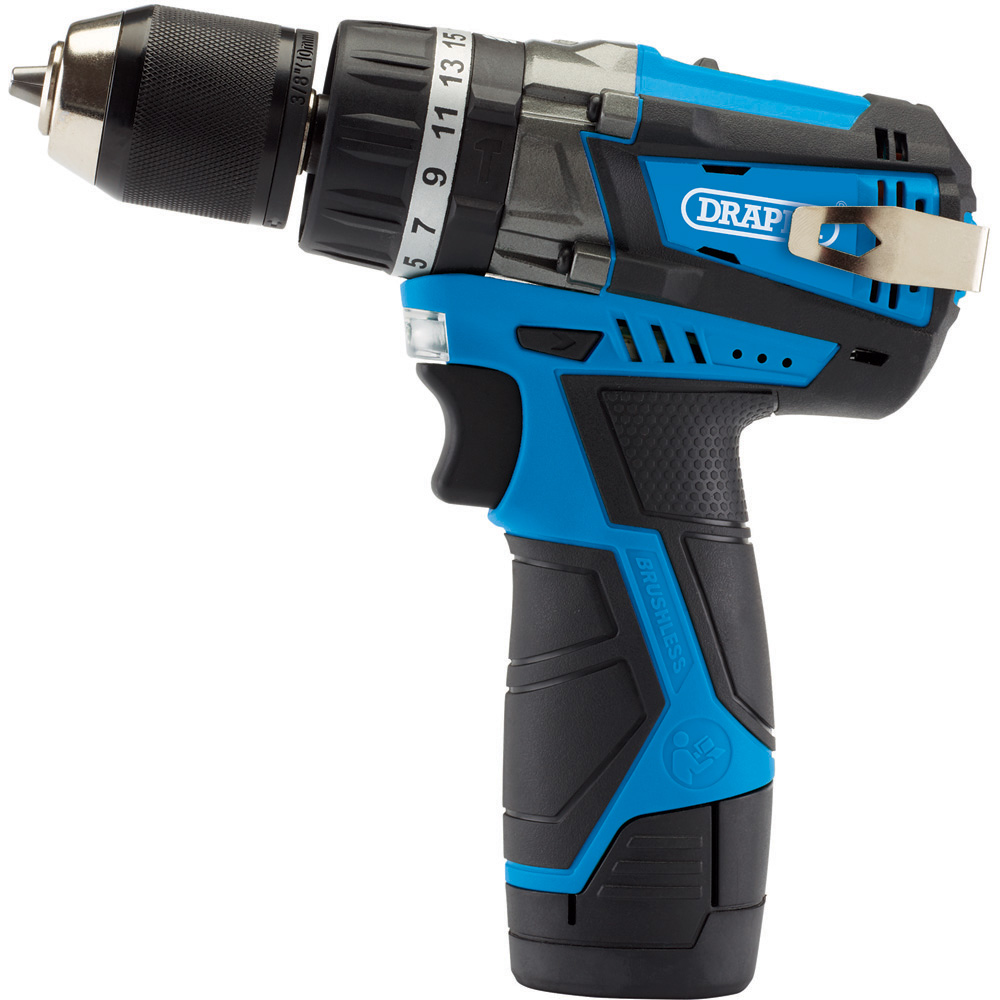 Go for the perfect power tools to help you get the job done with the Draper 12V Cordless Brushless Combi Drill. Whether you're a professional contractor or a DIY enthusiast, this tool is designed to make your work easier, faster, and more efficient than ever before. With features like easy-to-use controls, powerful motors, and durable construction, it is built to withstand even the toughest job sites. It incorporates an LED work light, an LED battery capacity indicator, and forward or reverse and variable speed features with an electronic brake. The brushless motor ensures greater efficiency, enabling more power to be applied to the activity and prolongs battery runtime. The 12V interchangeable battery system allows users to combine one battery with any of the tools within the 12V series (not compatible with Draper 20V). So why wait? Shop today and experience the power of this tool for yourself. Batteries and chargers are sold separately.