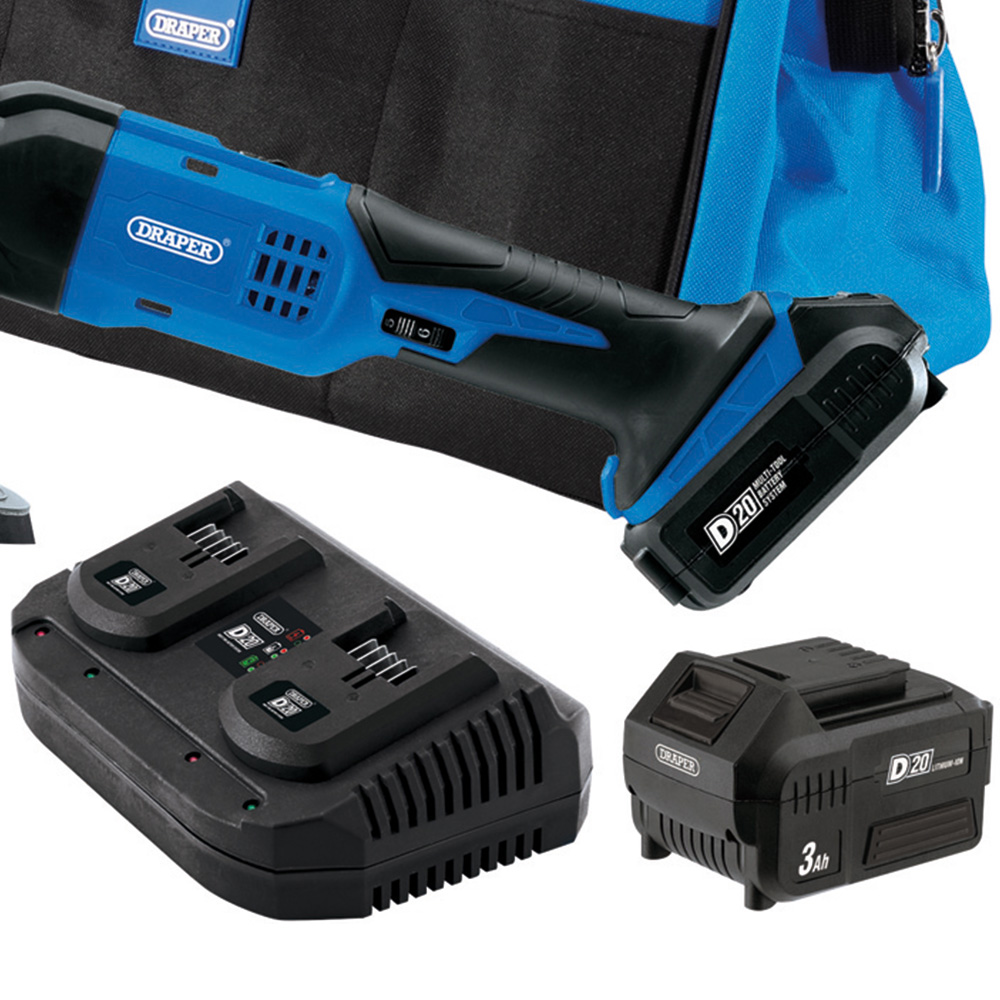 Draper D20 20V 125mm Dual Action Polisher Kit with 3.0Ah Batteries and Fast Charger