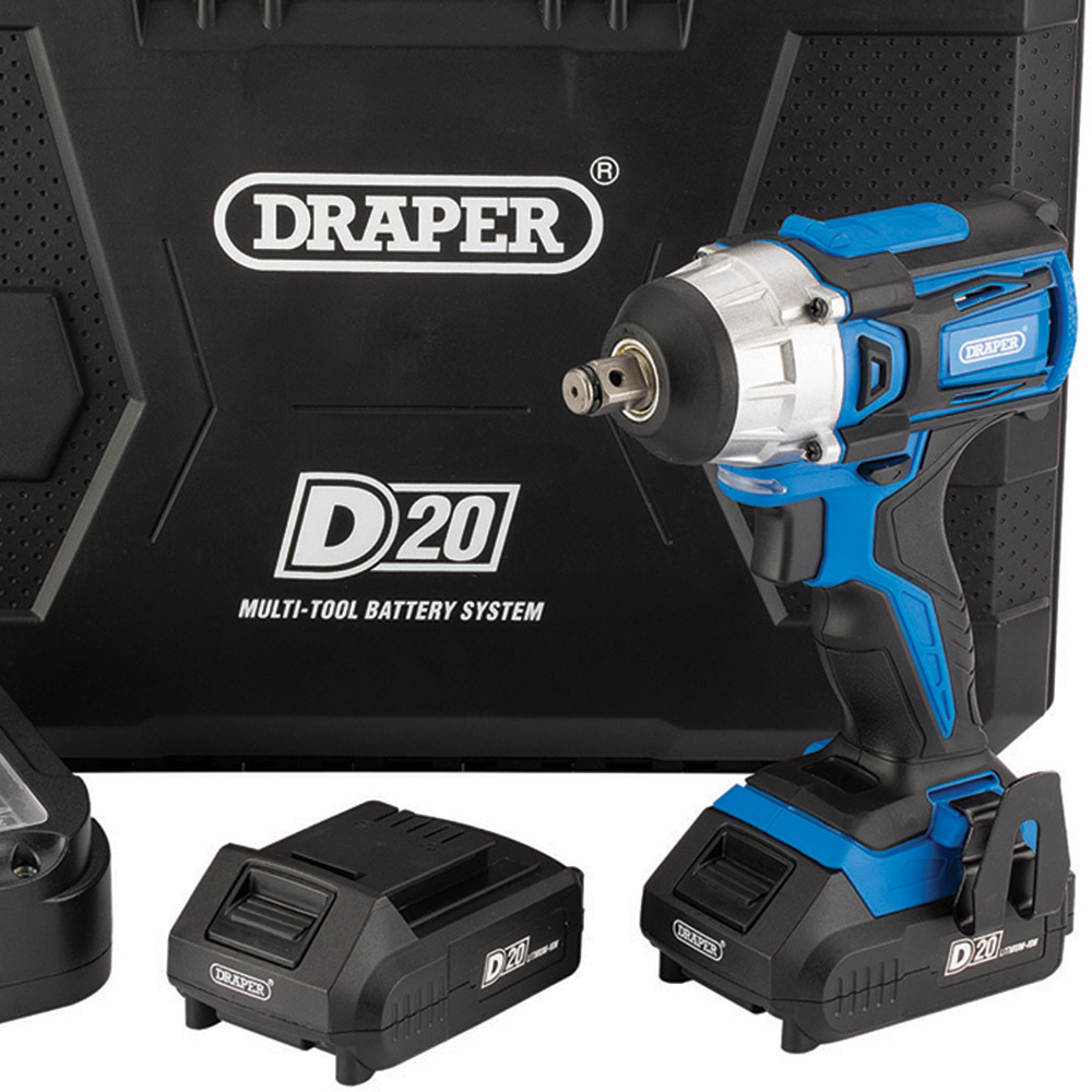 Draper D20 20V Brushless Impact Wrench with Batteries and Charger
