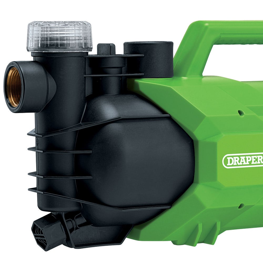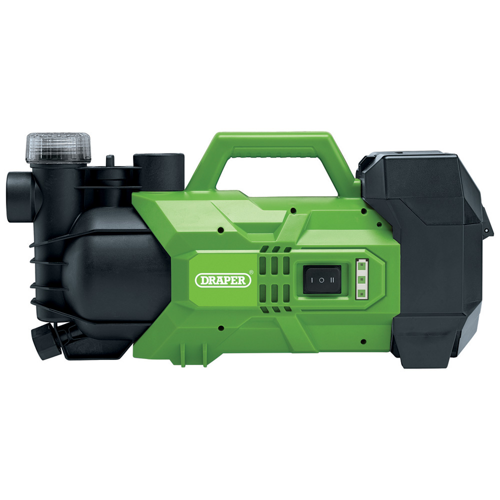 Use rainwater in your garden in a quick and easy way with the Draper D20 20V Water Pump Bare Unit. This cordless surface mounting garden pump is capable of lifting water to a maximum of 22 metres and will pump up to 2,800 litres per hour on normal mode and 2,000 litres per hour on eco mode. It can be used for pond or tank drainage with a garden spray gun fitted. It has a carry handle on top for portability and is supplied with a 2m suction hose and two connectors. The D20 batteries and chargers are sold separately. The D20 interchangeable battery system – allows you to combine the same battery or batteries with any of the tools within the D20 series. 1 x D20 20V Water Pump (Sold Bare) 1 x Suction hose, 2m 1 x Suction hose connector with non-return valve, 1/4inch 1 x Outlet hose connector Voltage: 20VPower: 180W Maximum pressure: 2.2bar Maximum pump height: 22m Maximum pump rate: 2,800l/h Maximum grain size: 0.5mm Weight: 2.4kg. Please Note: Operates solely on batteries (not included), with no mains powers required.